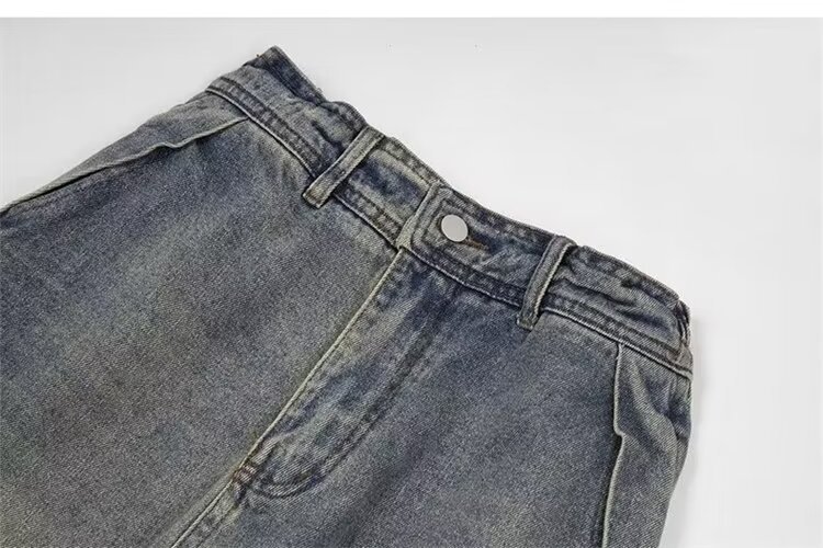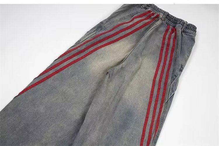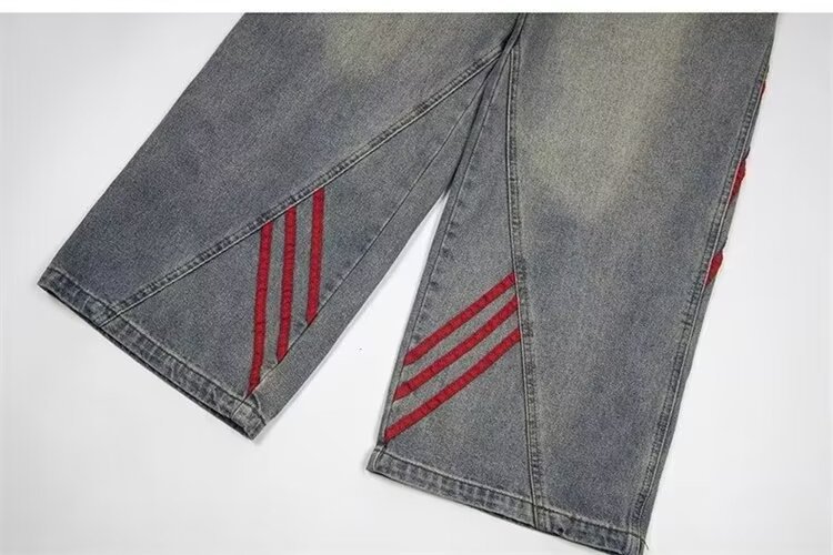 미국식 바이브 빈티지 줄무늬 스티칭 청바지 여성 하이 스트리트 패션 브랜드 루즈 스트레이트 캐주얼 작업복 와이드 레그 바지스토어 가기