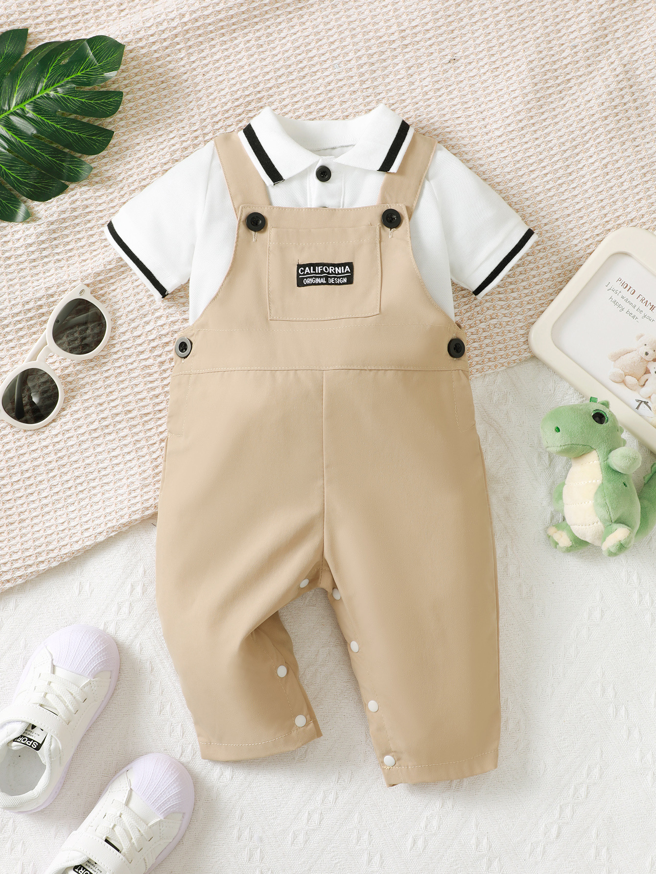 男婴套装2024夏季跨境新款洋气字母印花背带裤短袖T恤两件套童装