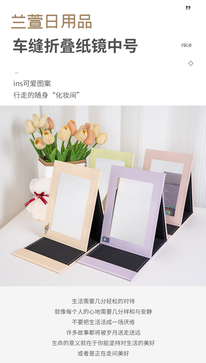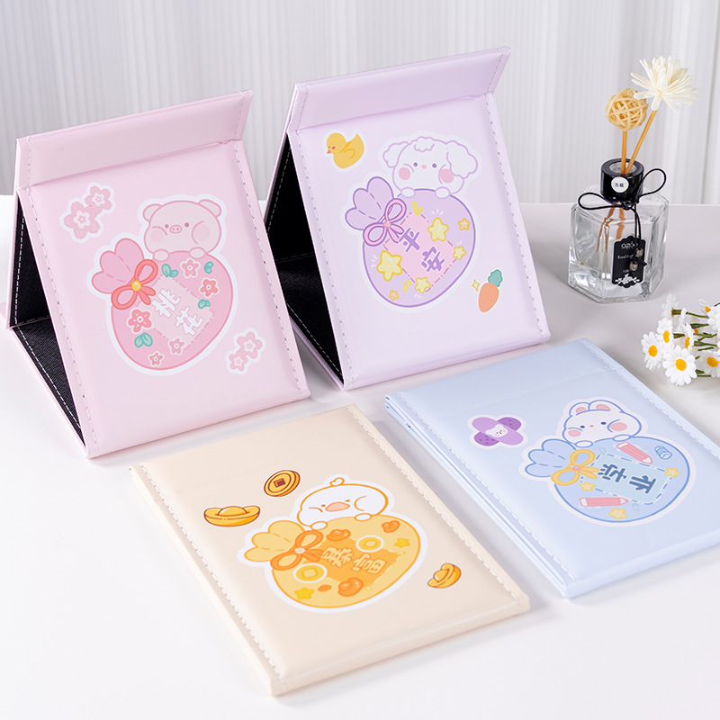 공주 화장 거울 접이식 화장대 종이 거울 학생 동물 소녀 감성 접이식 테이블 거울 휴대용 접이식 거울