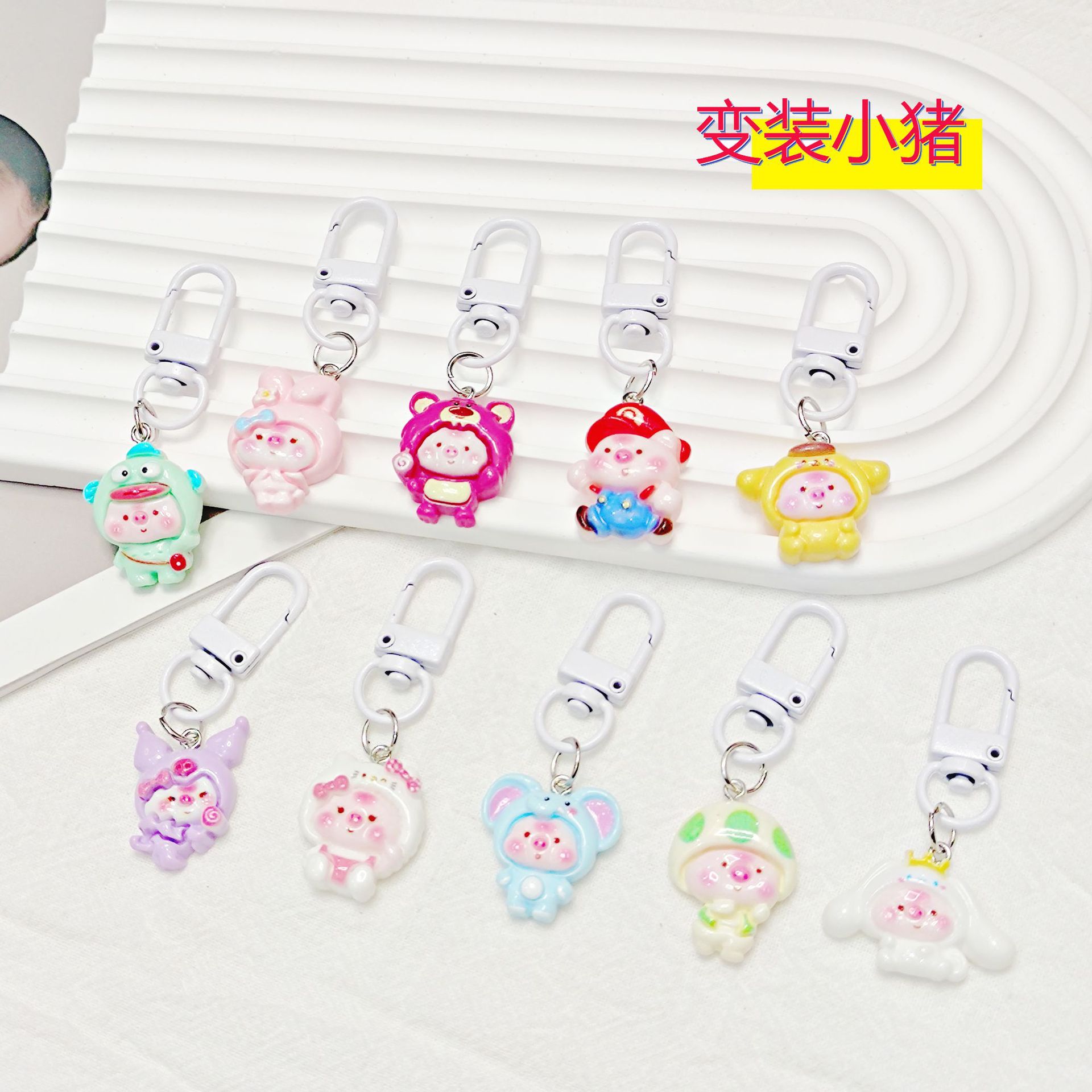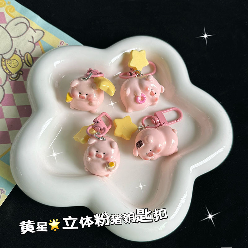슈퍼 귀여운 만화 귀여운 3 차원 돼지 키 체인 소녀 학생 스타 소녀 학교 가방 여자 친구 선물 작은 펜던트