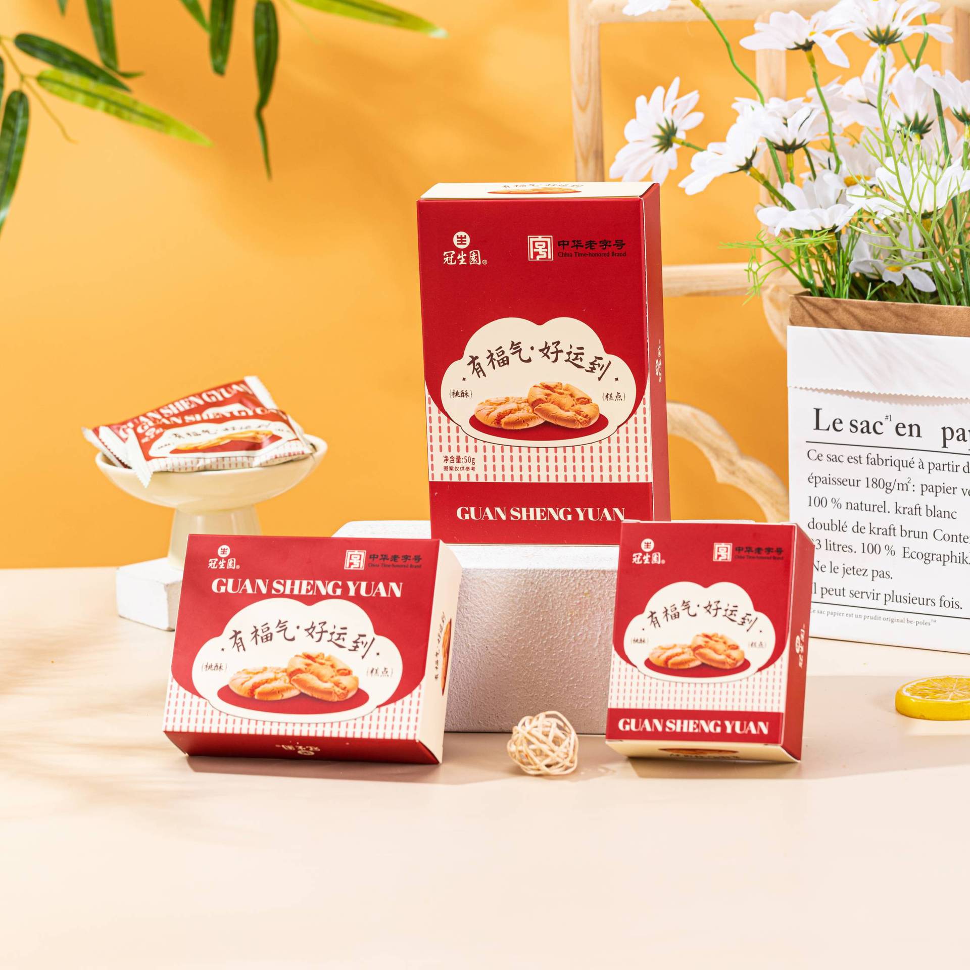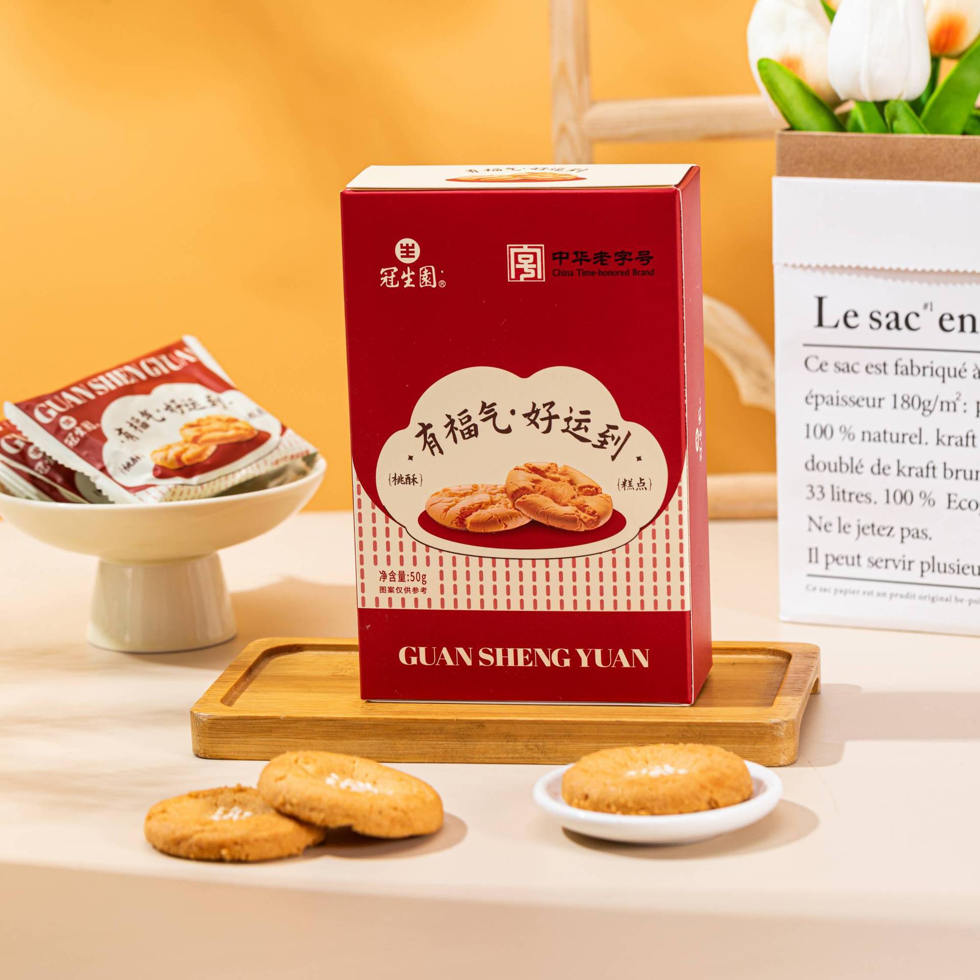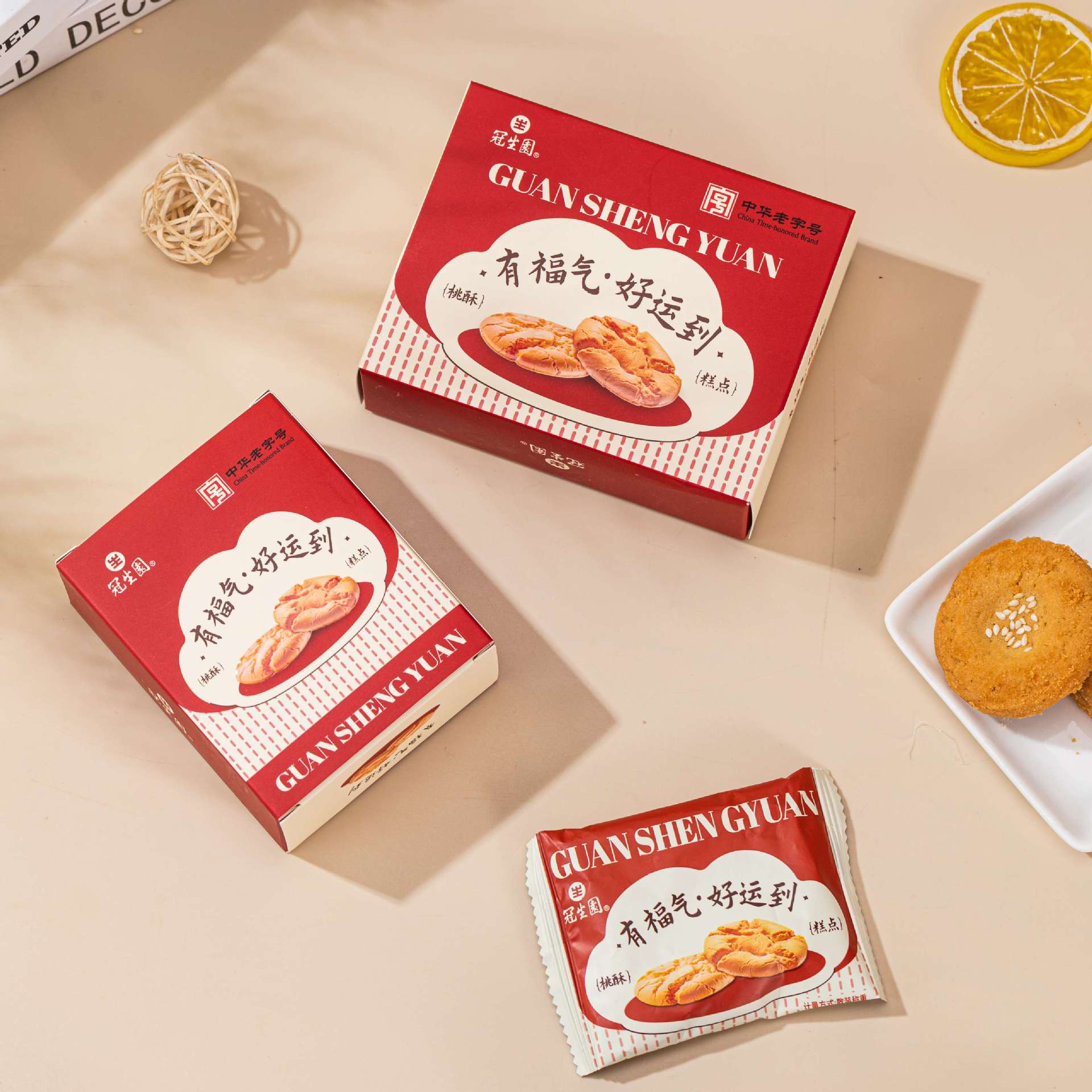 Guanshengyuan 복숭아 크리스프 비스킷 중국 전통 과자 간식 사무실 오후 차 웨딩 축제 손 선물 케이크스토어 가기
