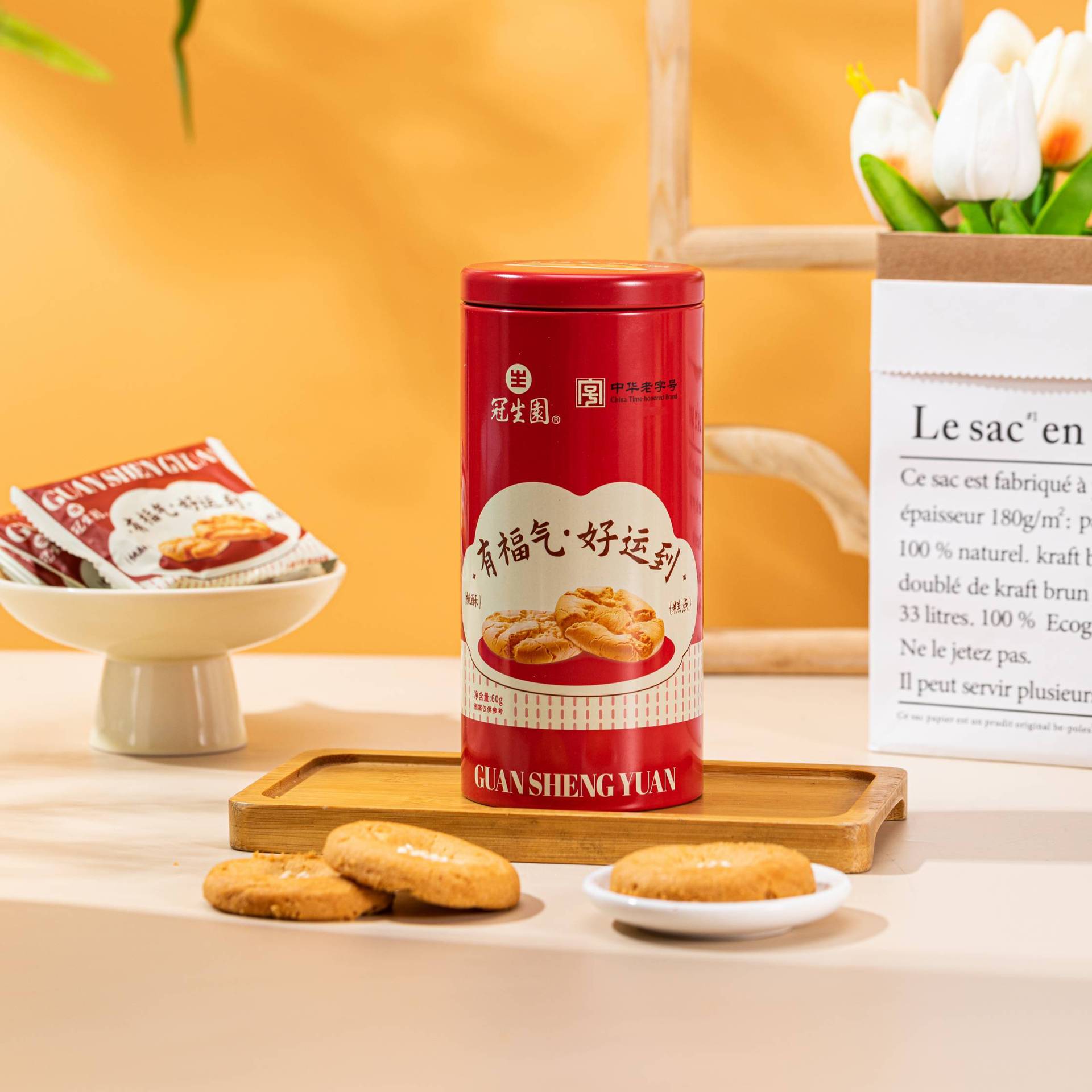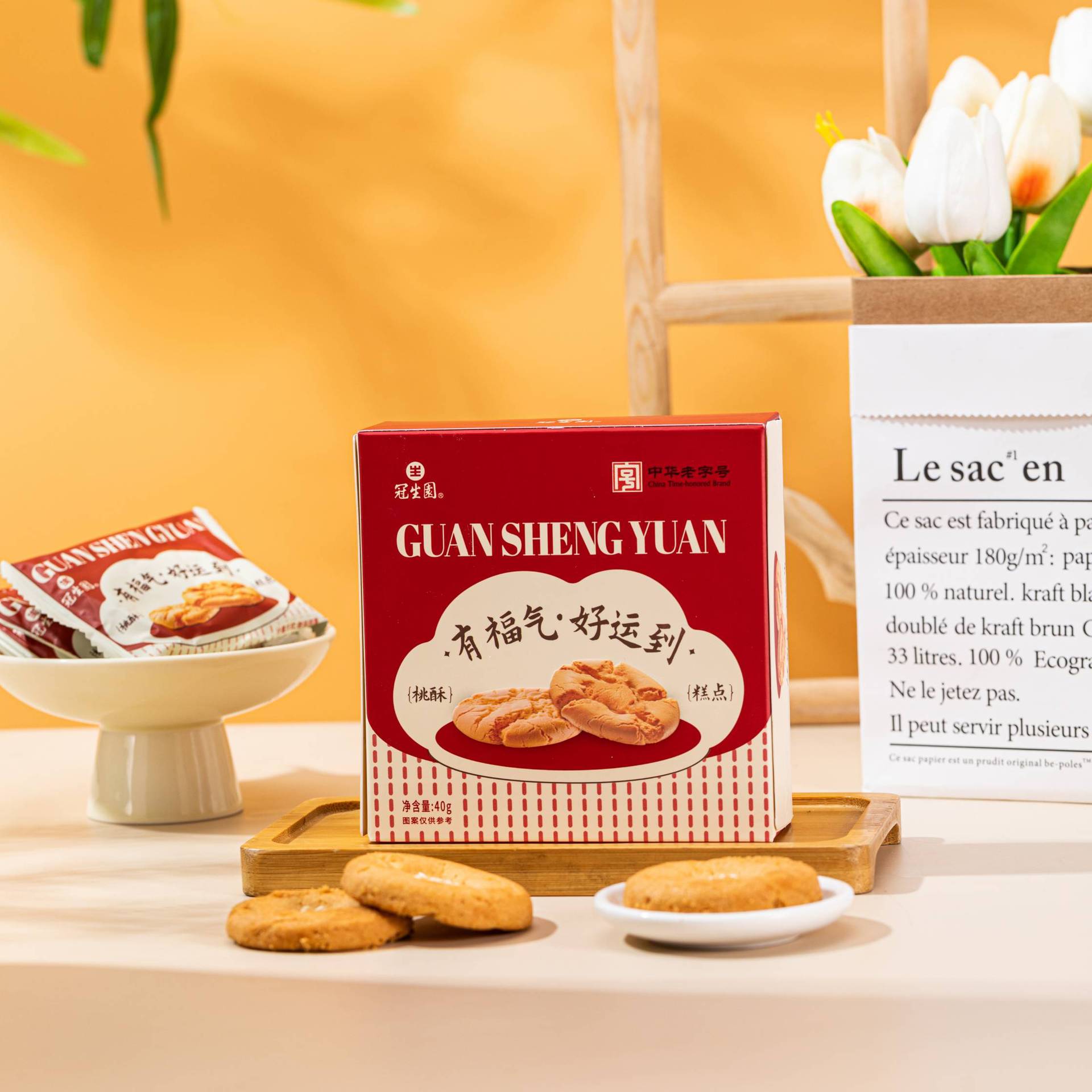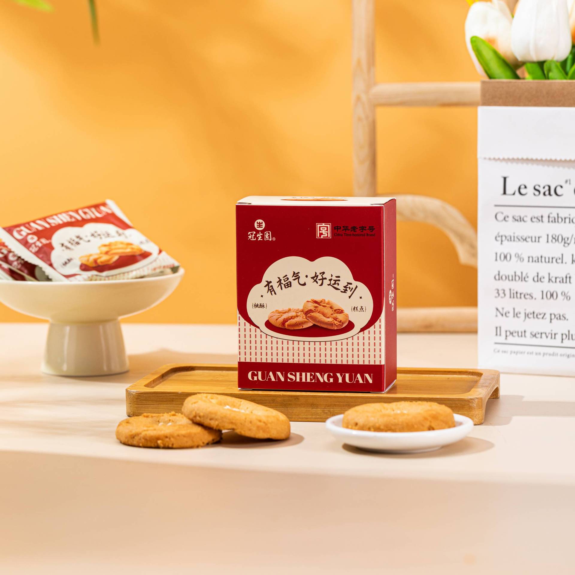 Guanshengyuan 복숭아 크리스프 비스킷 중국 전통 과자 간식 사무실 오후 차 웨딩 축제 손 선물 케이크스토어 가기