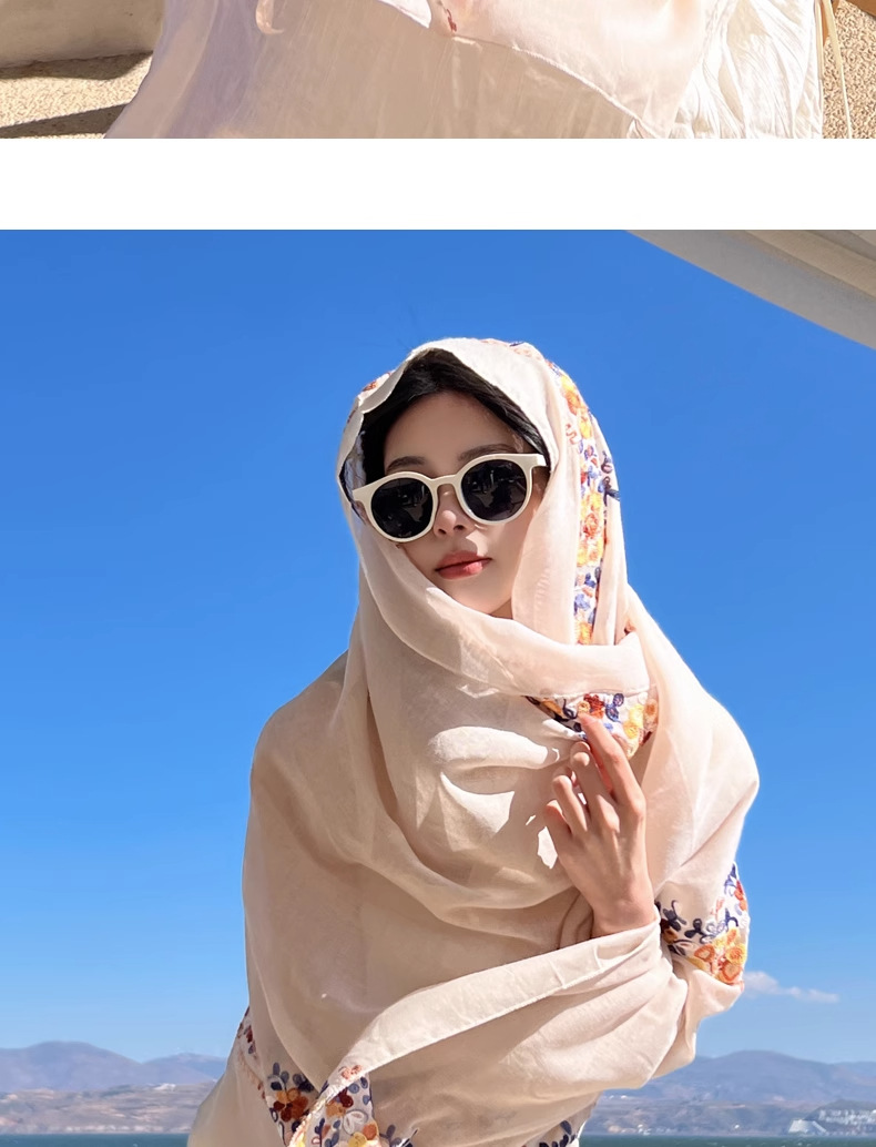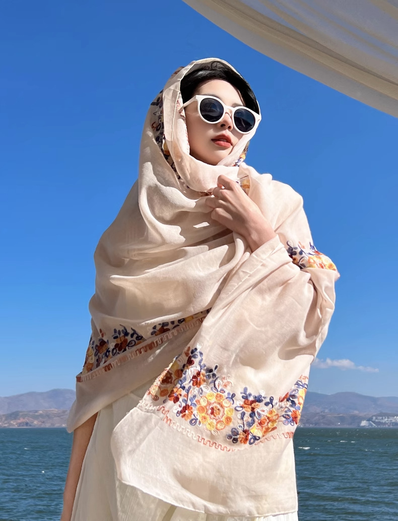 민족 스타일 면화와 리넨 스카프 여성의 여름 목도리 윈난 차카 솔트 레이크 관광 선 스크린 비치 스카프 대형 실크 스카프스토어 가기