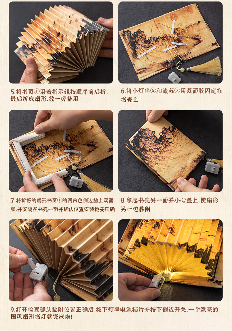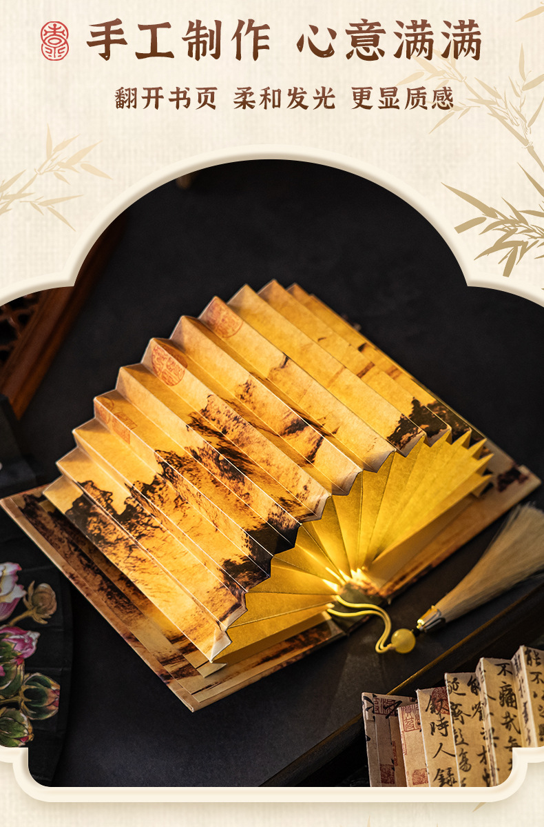골동품 diy 팬 모양의 책 램프 학생 창조적 인 높은 가치 접이식 수제 야간 어린이 선물 데스크탑 장식품