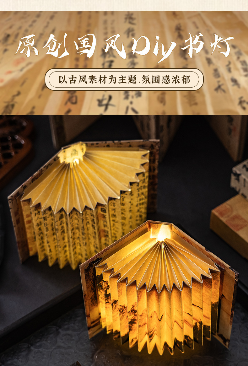 골동품 diy 팬 모양의 책 램프 학생 창조적 인 높은 가치 접이식 수제 야간 어린이 선물 데스크탑 장식품스토어 가기