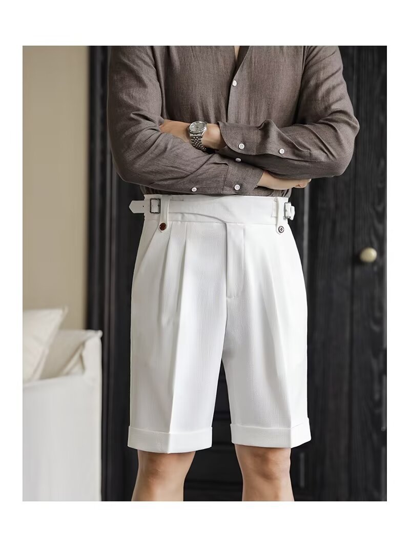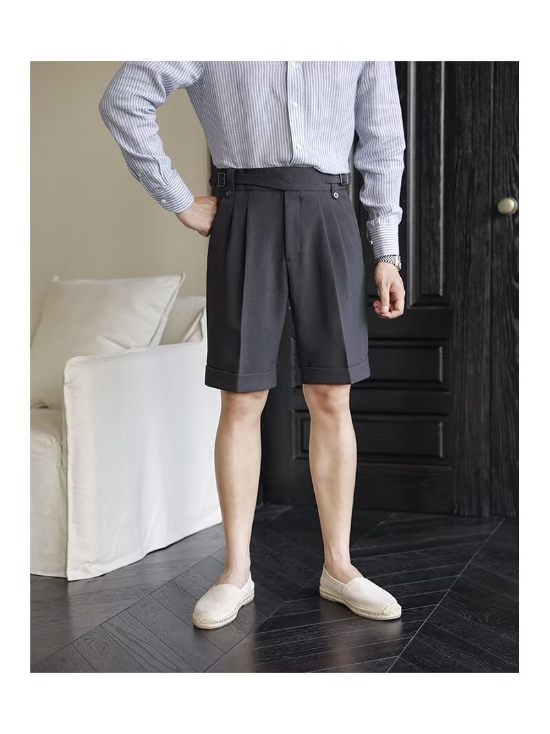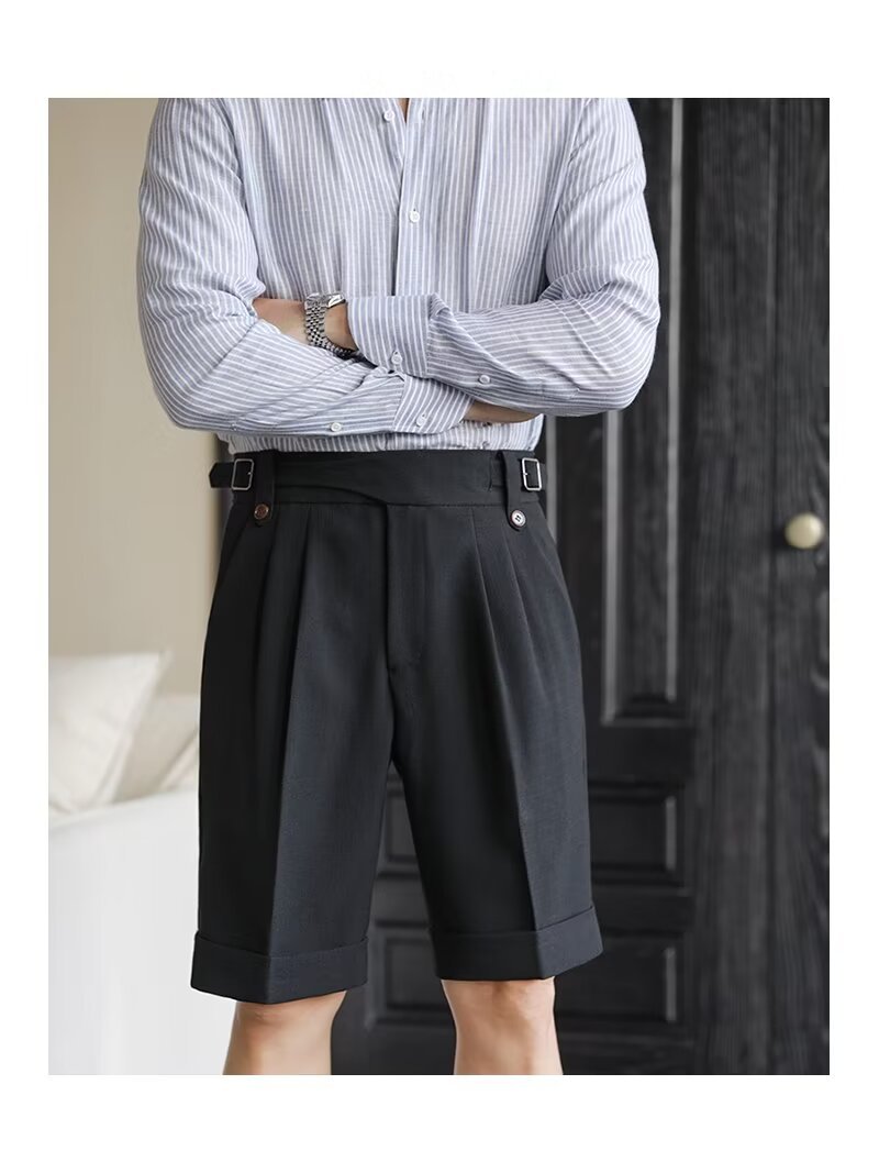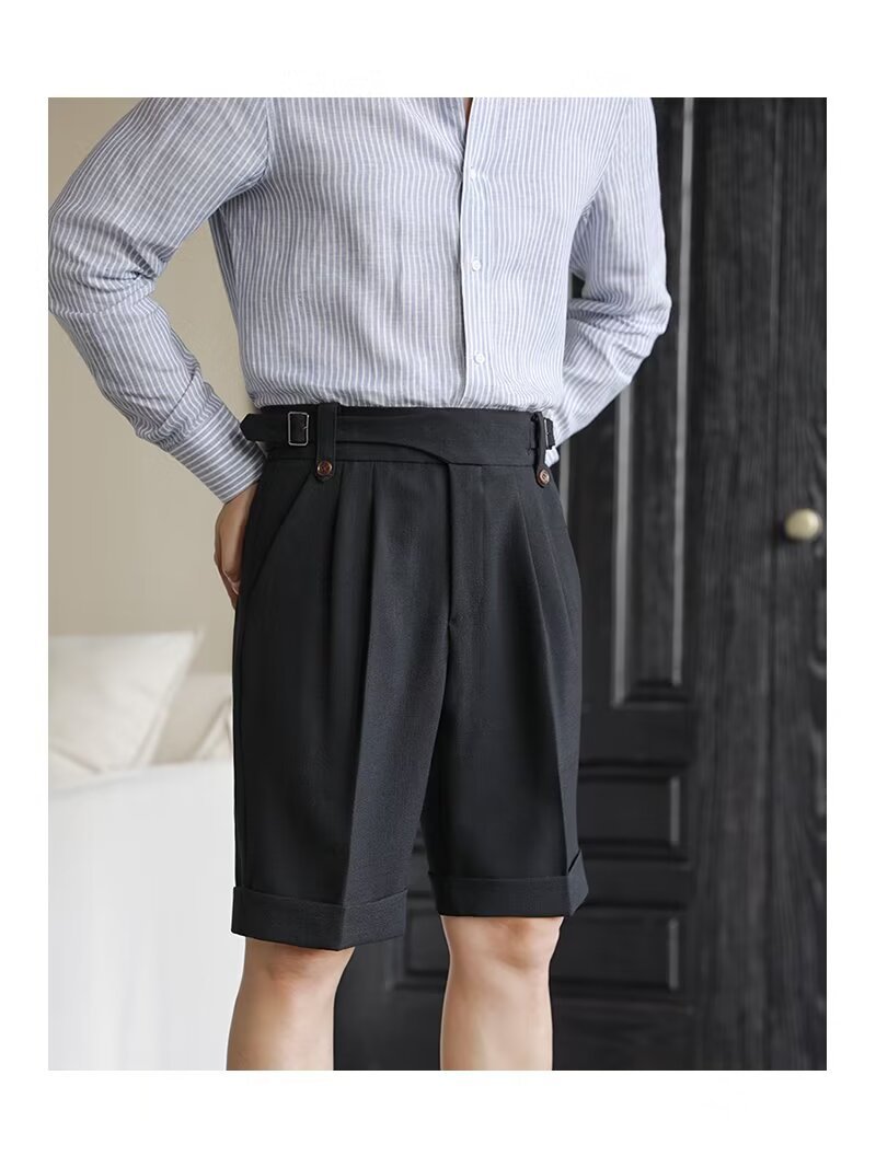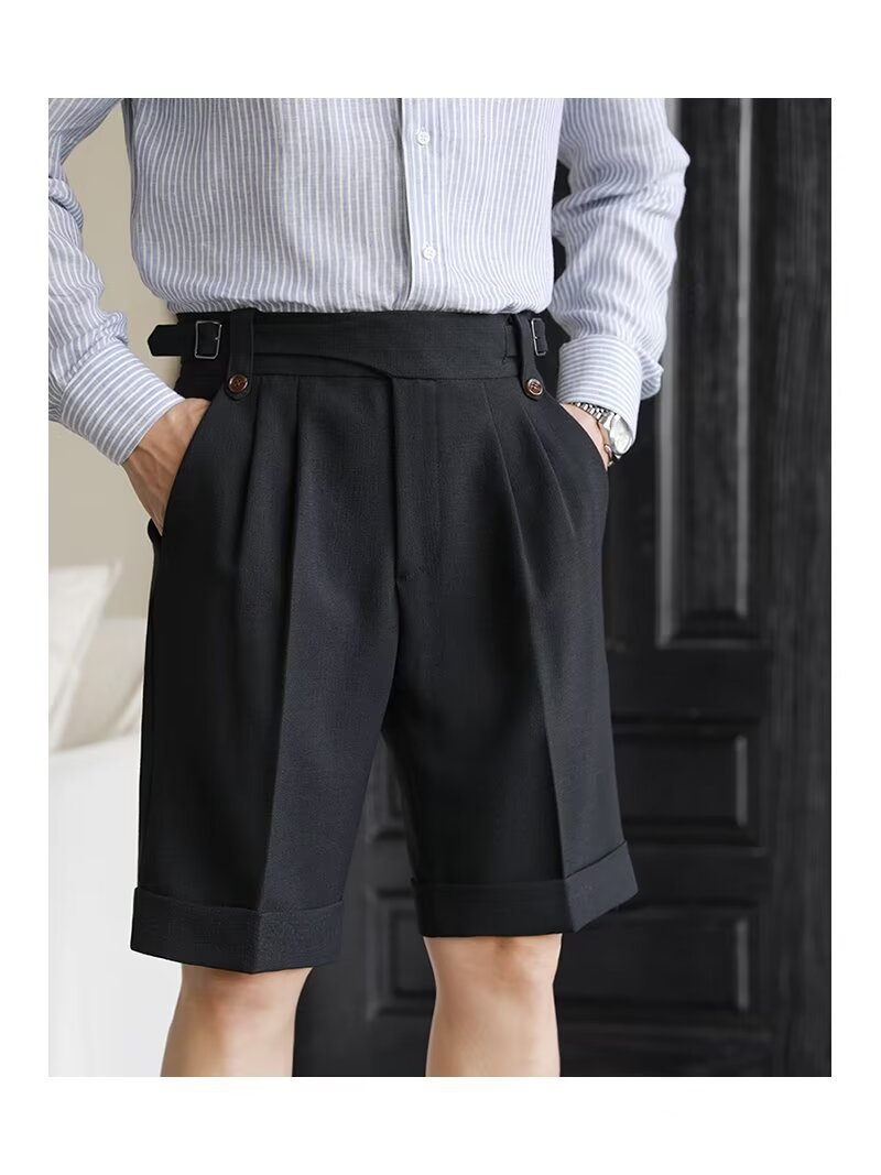 캐주얼 하이 허리 반바지 남성 여름 비즈니스 스트레이트 비 다림질 캐주얼 바지 나폴리 5 점 바지스토어 가기