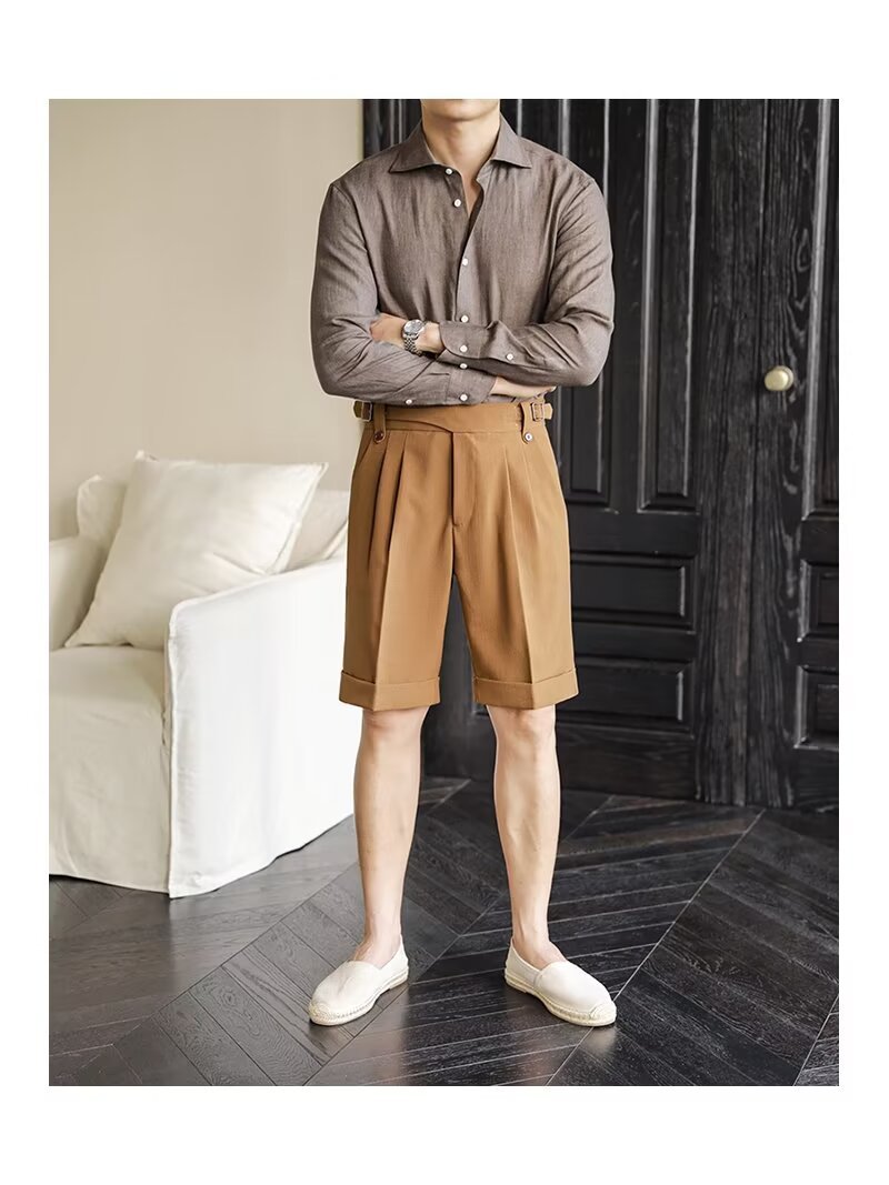 캐주얼 하이 허리 반바지 남성 여름 비즈니스 스트레이트 비 다림질 캐주얼 바지 나폴리 5 점 바지