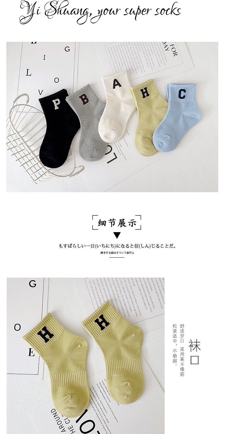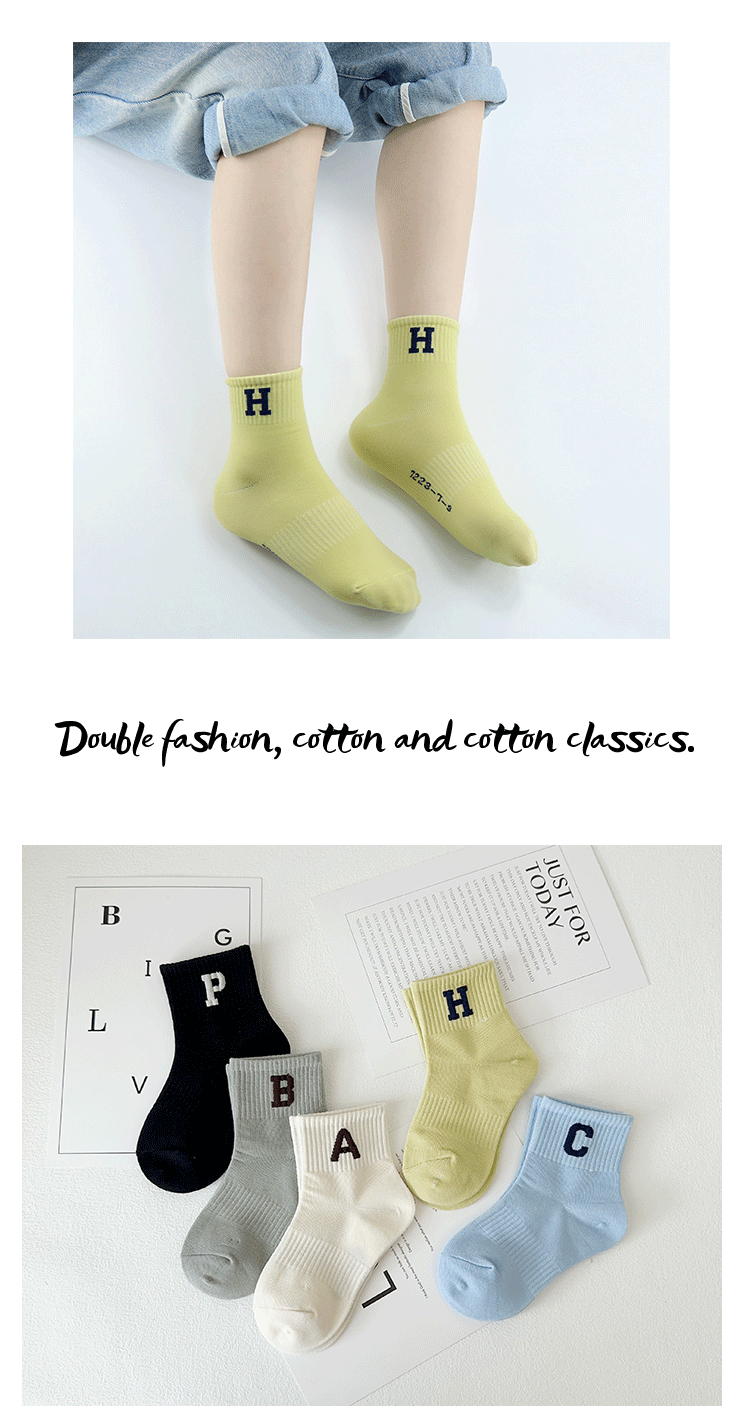 이쌍 어린이 양말 가을 · 겨울 새 한국식 편지 중간관 양말 섞인 면 소년 스포츠 양말 학생면 양말