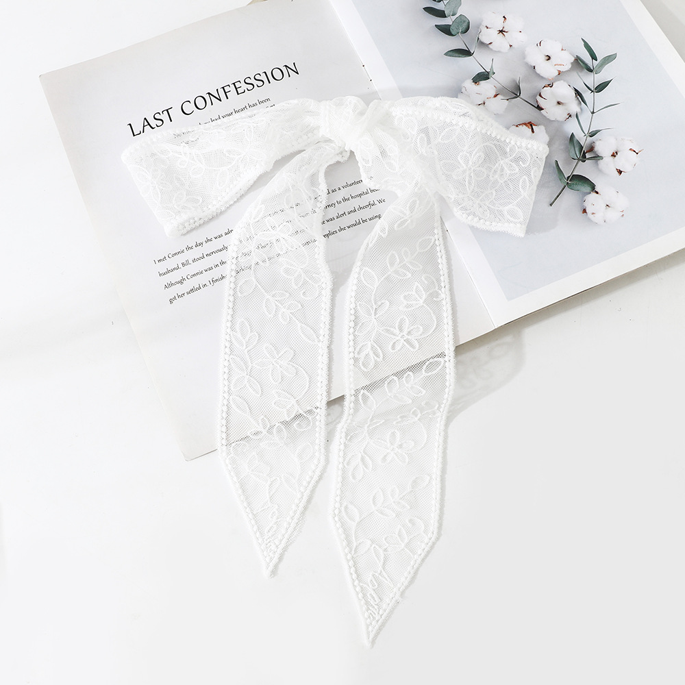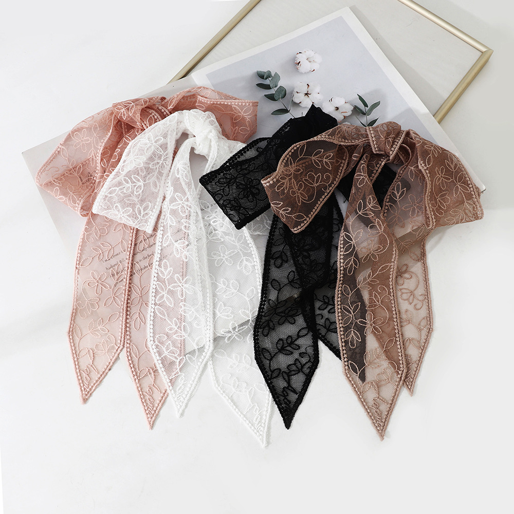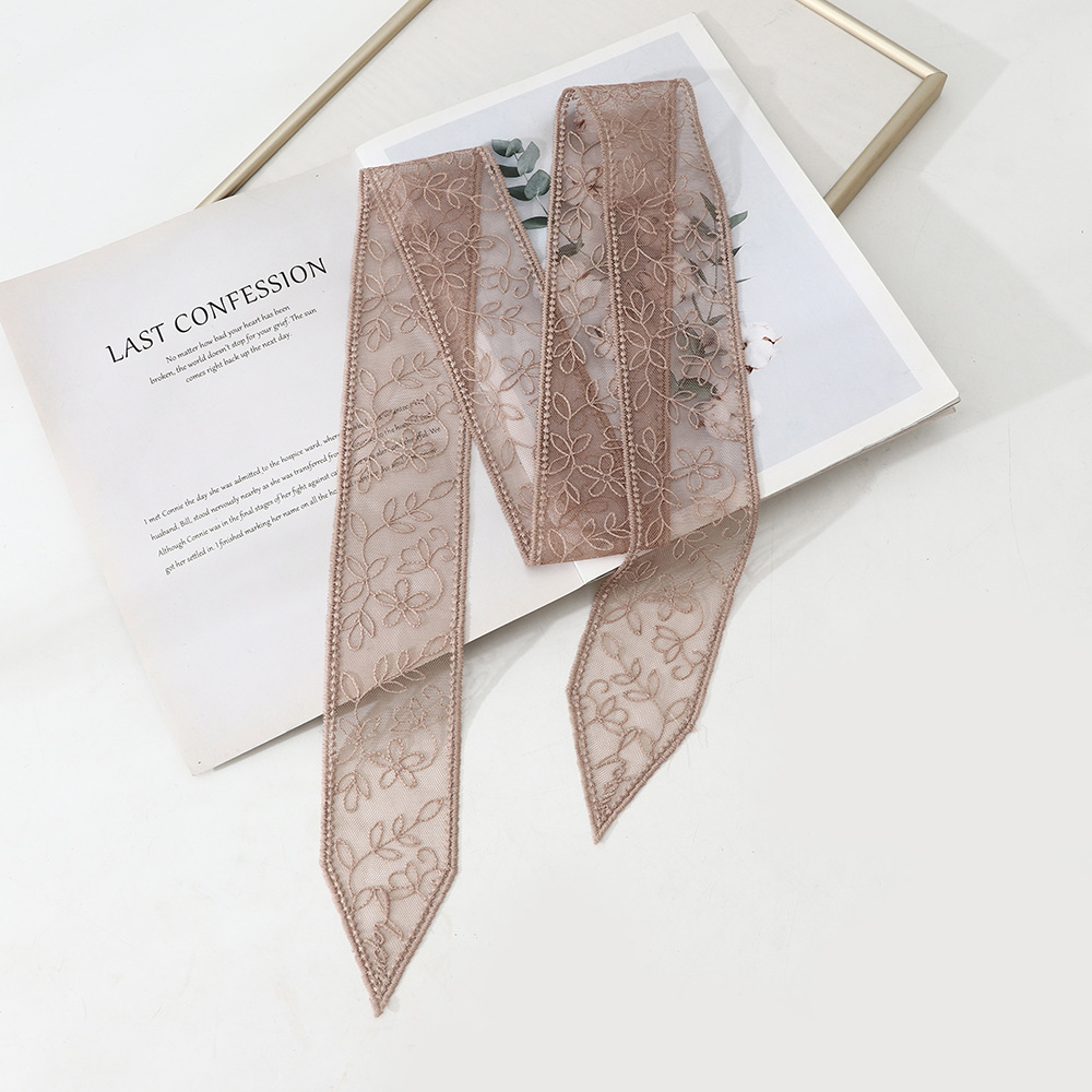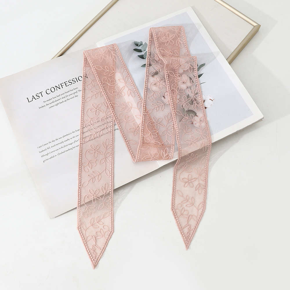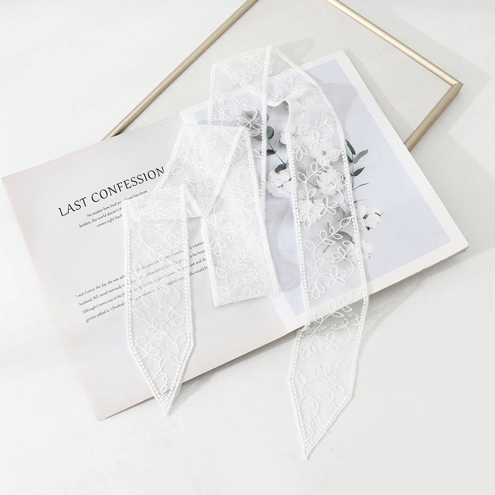 한국 스타일 우아한 레트로 레이스 벨트 헤어 벨트 긴 리본 장식 스카프 작은 스카프 목걸이 스카프 여성
