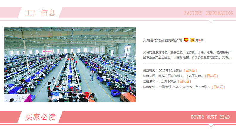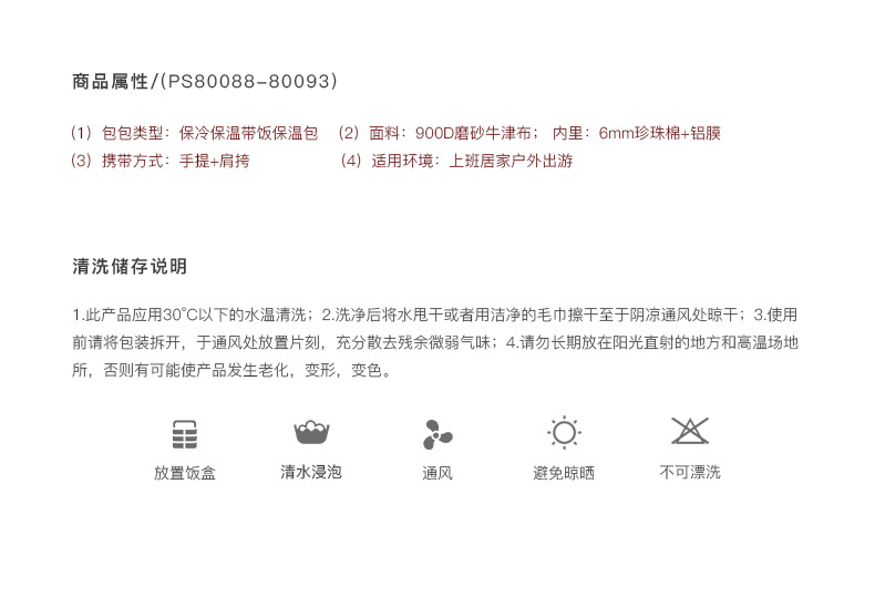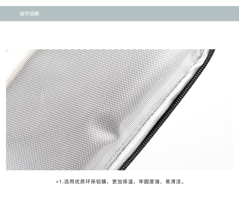 商品材质: 900D磨砂牛津布+高密度环保铝箔 【环保级】