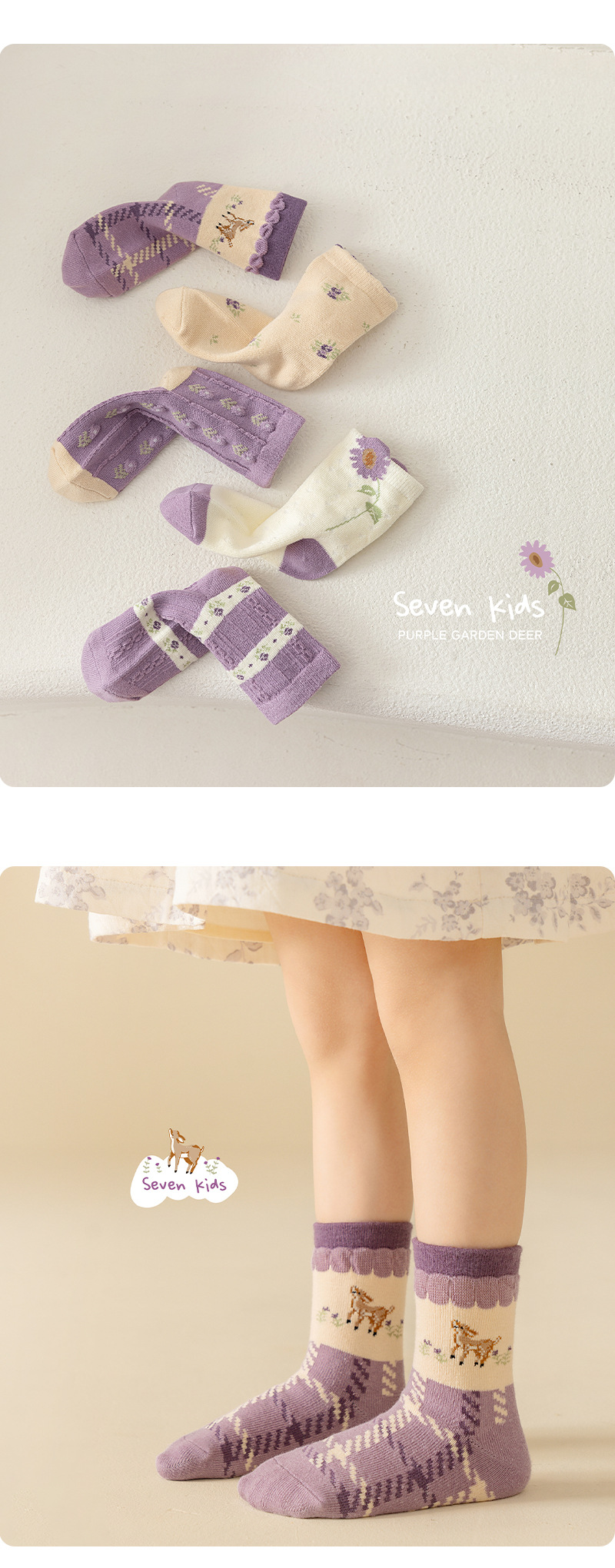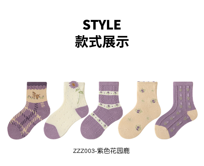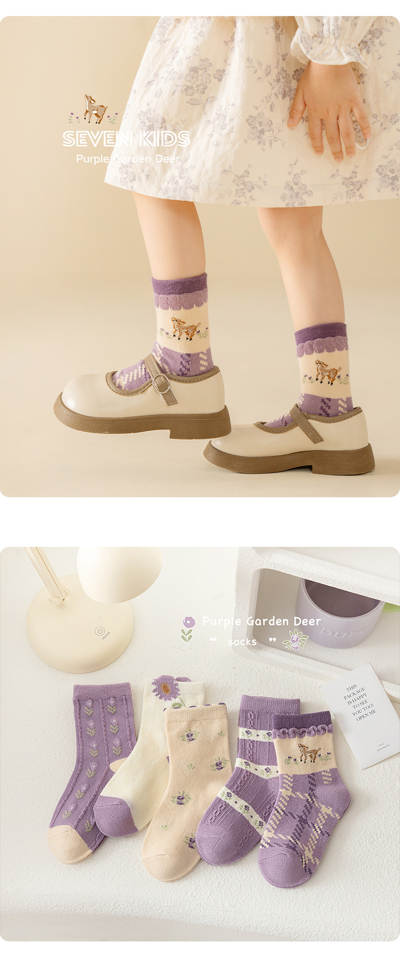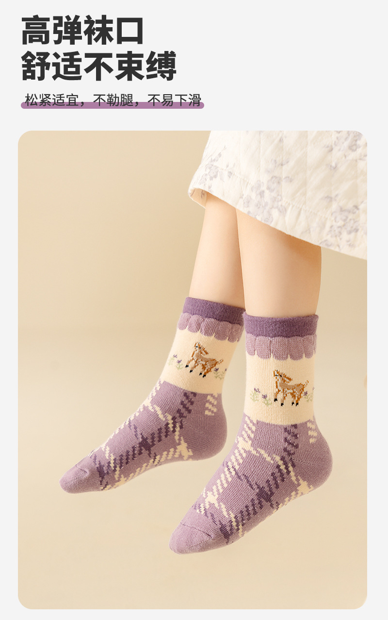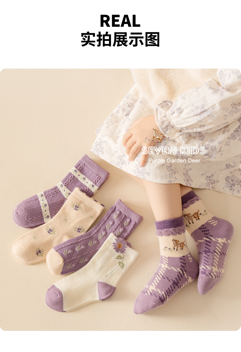 어린이 양말 5 쌍 2024 가을과 겨울 새로운 보라색 사슴 소년 소녀 튜브 양말 조수 양말 무료 배송스토어 가기