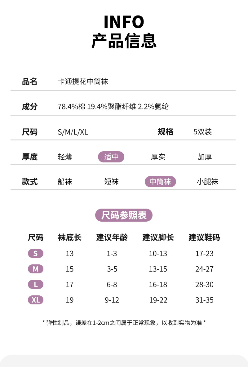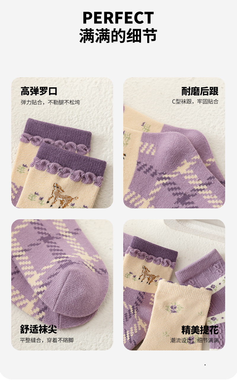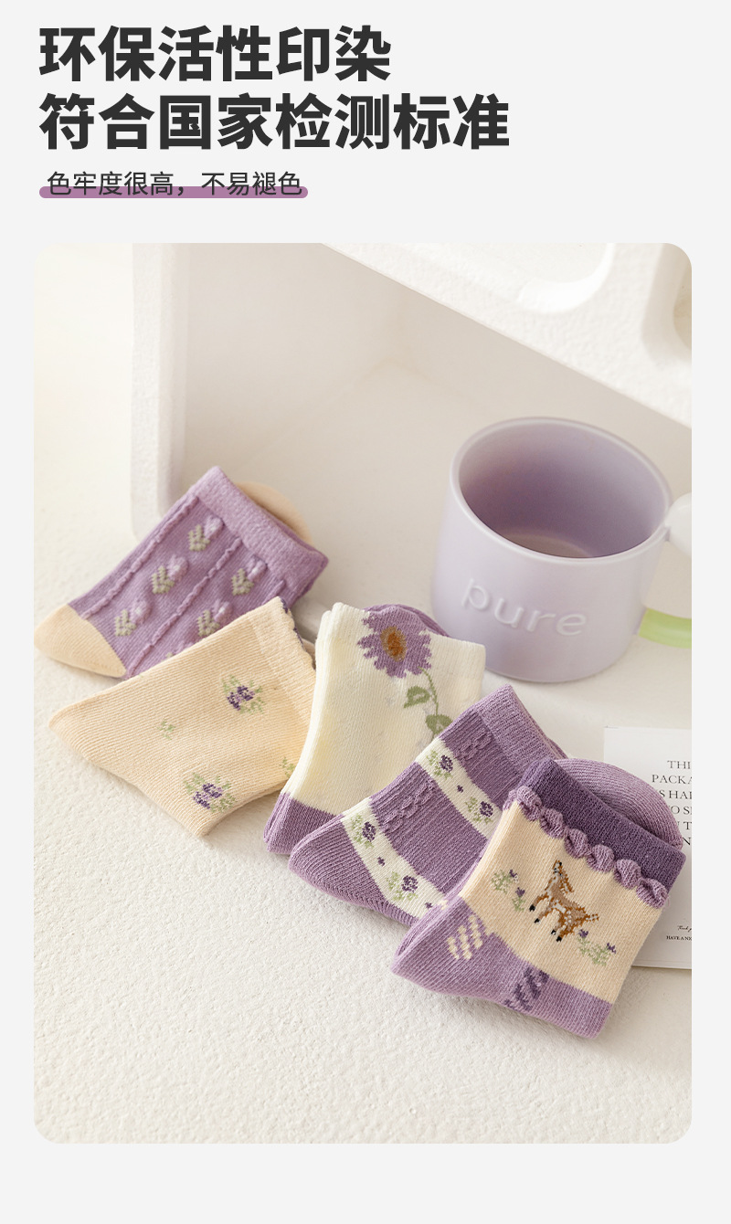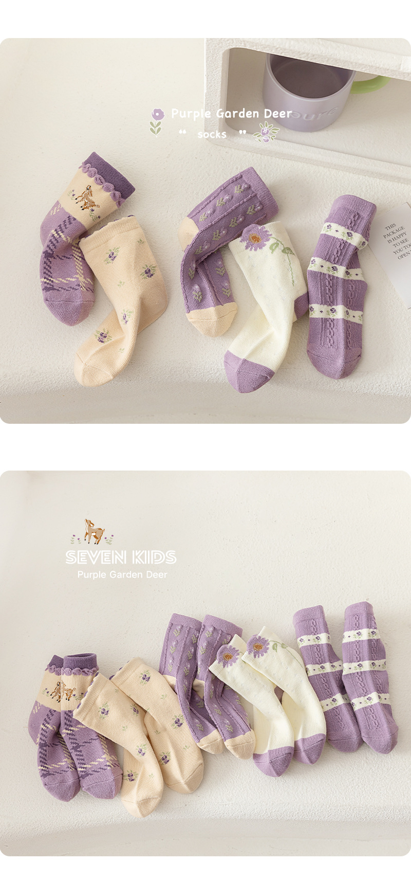 어린이 양말 5 쌍 2024 가을과 겨울 새로운 보라색 사슴 소년 소녀 튜브 양말 조수 양말 무료 배송스토어 가기