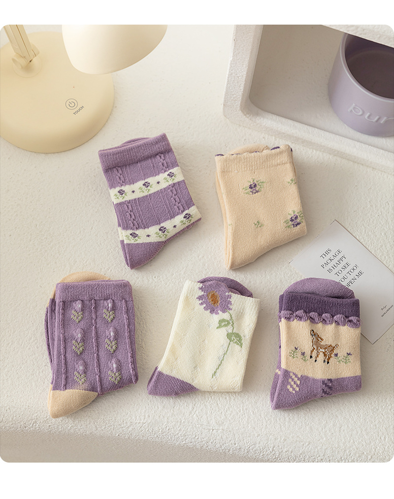 어린이 양말 5 쌍 2024 가을과 겨울 새로운 보라색 사슴 소년 소녀 튜브 양말 조수 양말 무료 배송