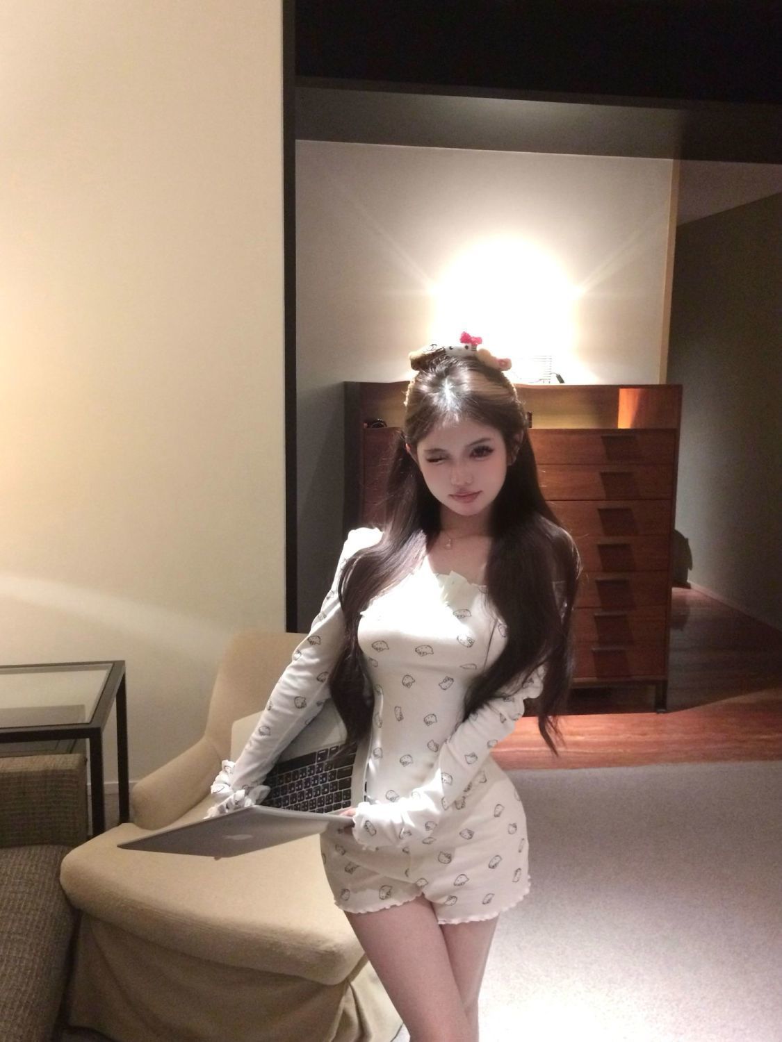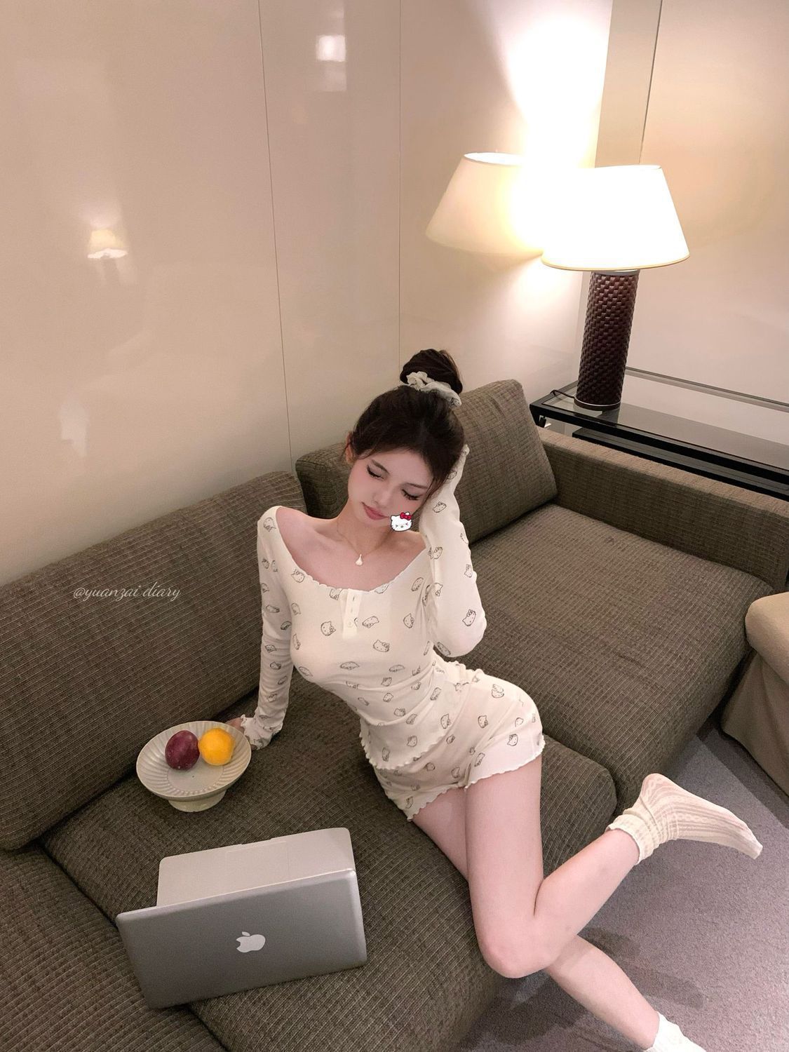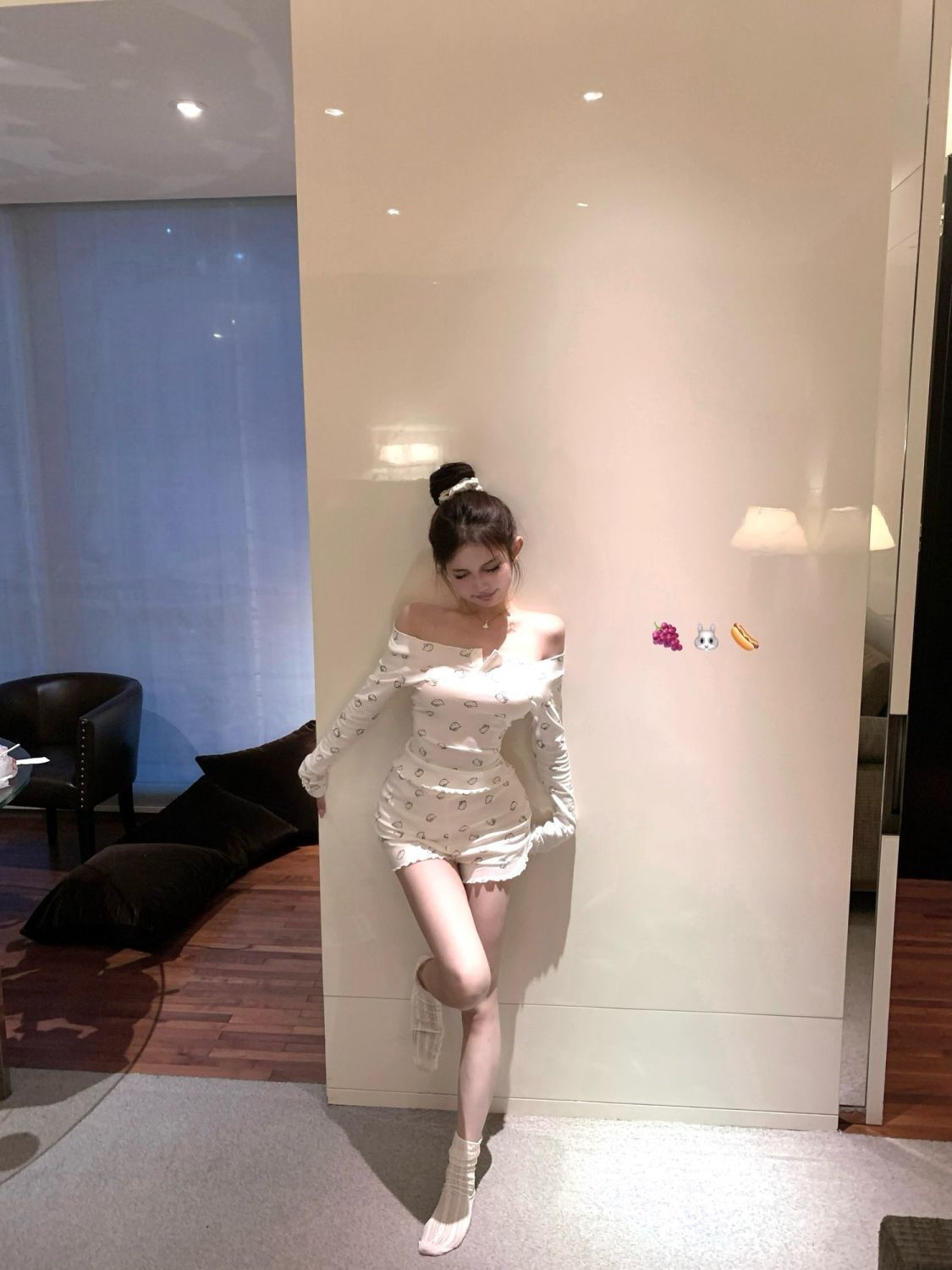 [공장 재고] 순수한 욕망 오프 숄더 만화 프린트 긴팔 티셔츠 여성 여름 세트 캐주얼 반바지 투피스 세트스토어 가기