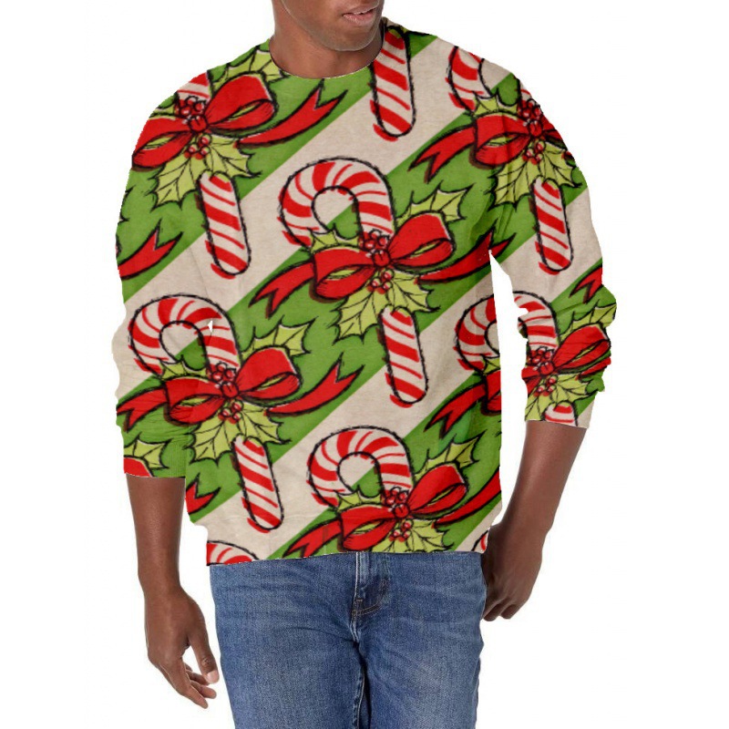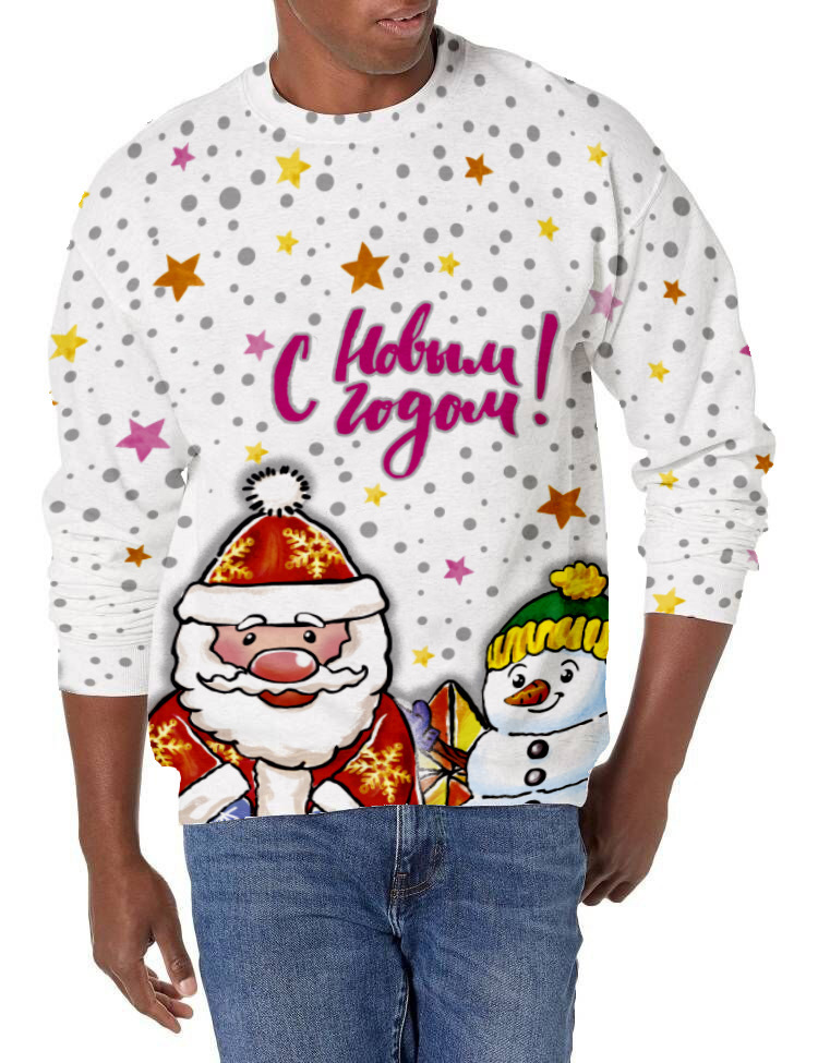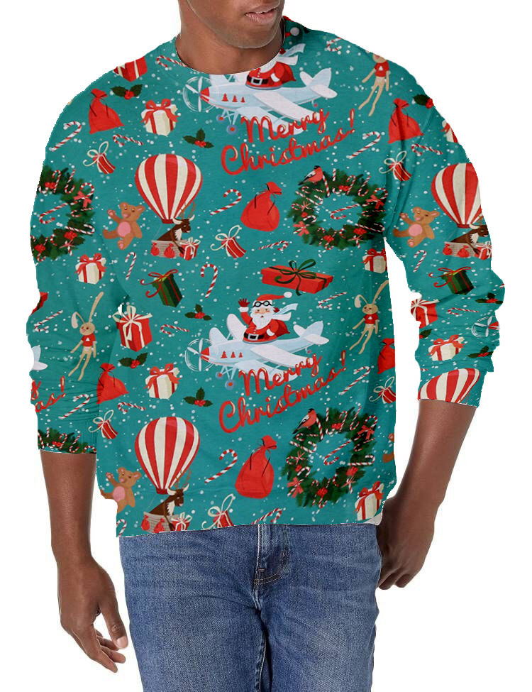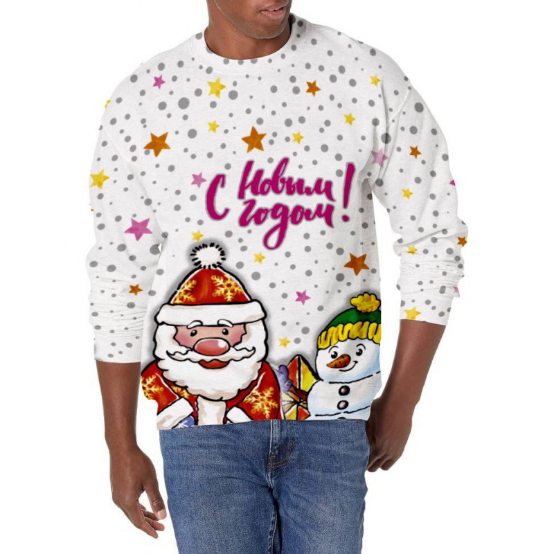 2024 크리스마스 유럽과 미국의 플러스 사이즈 남자 크루 넥 느슨한 땀 3D 디지털 인쇄 풀오버 긴 소매 땀 탑