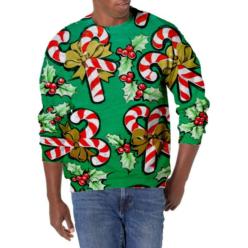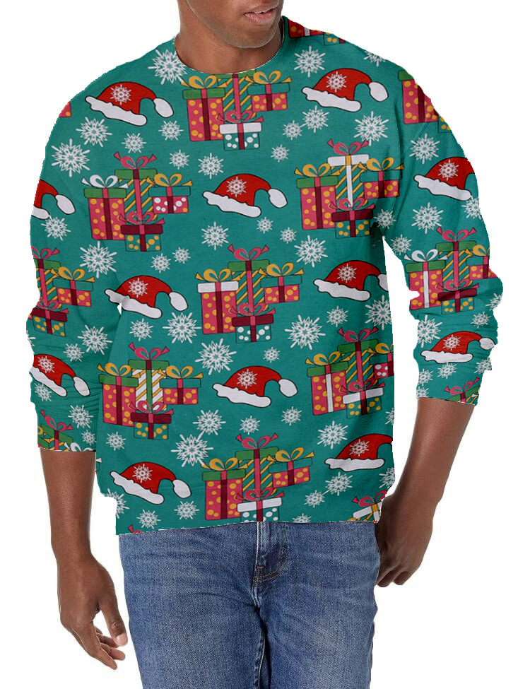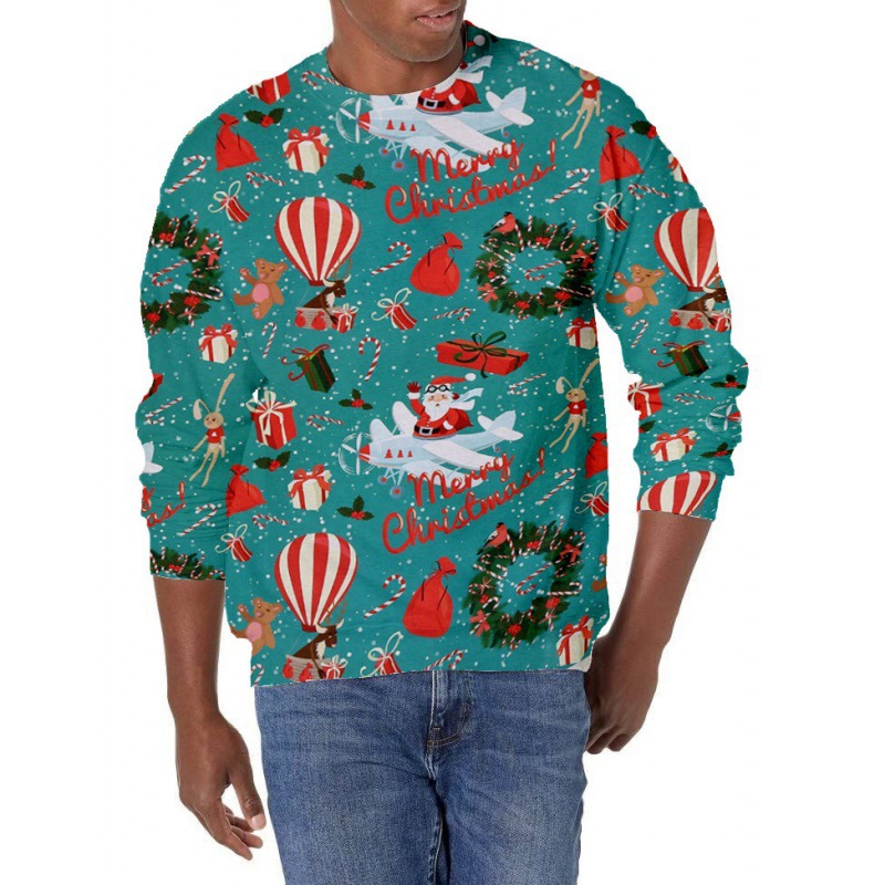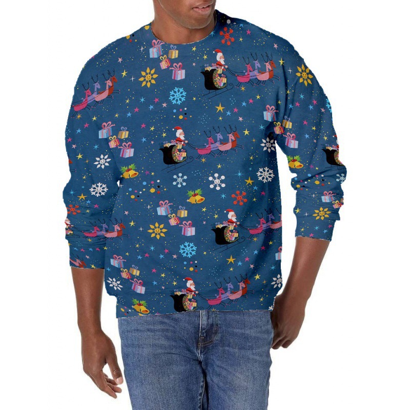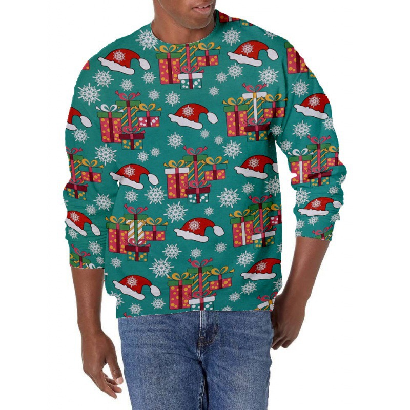 2024 크리스마스 유럽과 미국의 플러스 사이즈 남자 크루 넥 느슨한 땀 3D 디지털 인쇄 풀오버 긴 소매 땀 탑스토어 가기