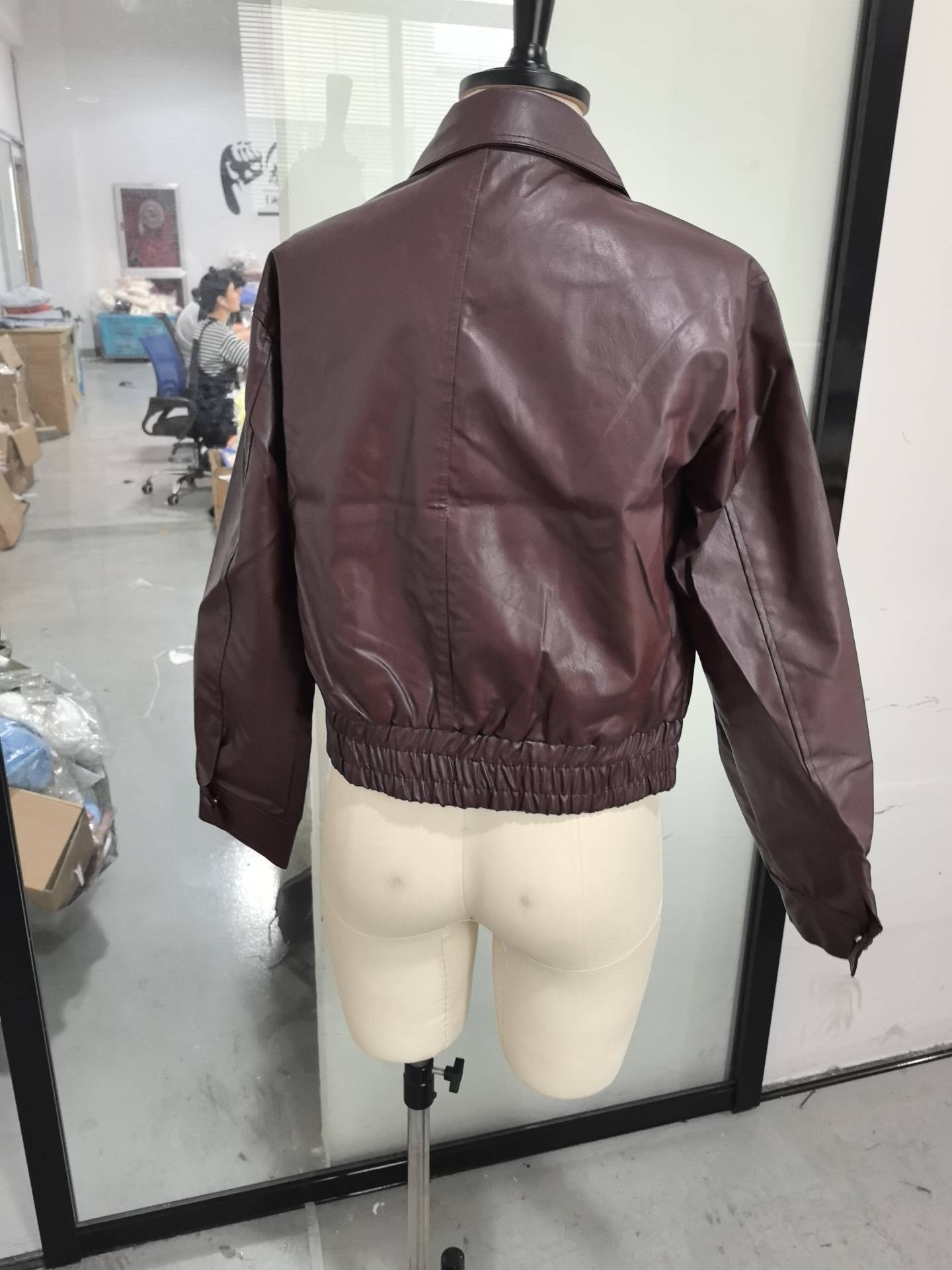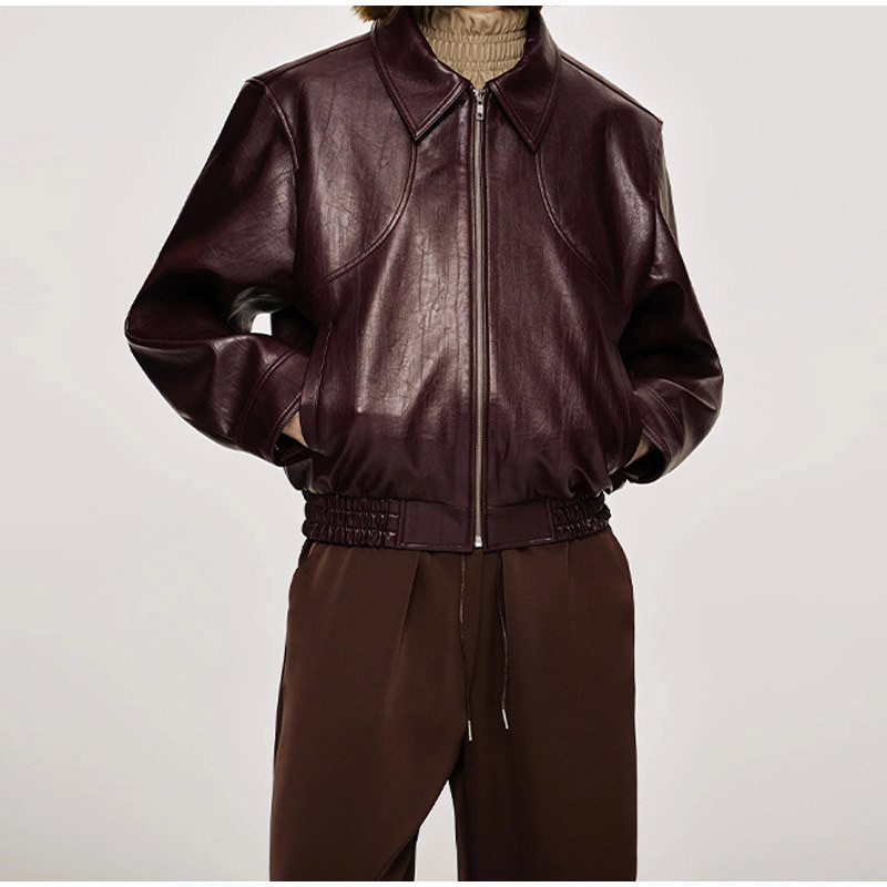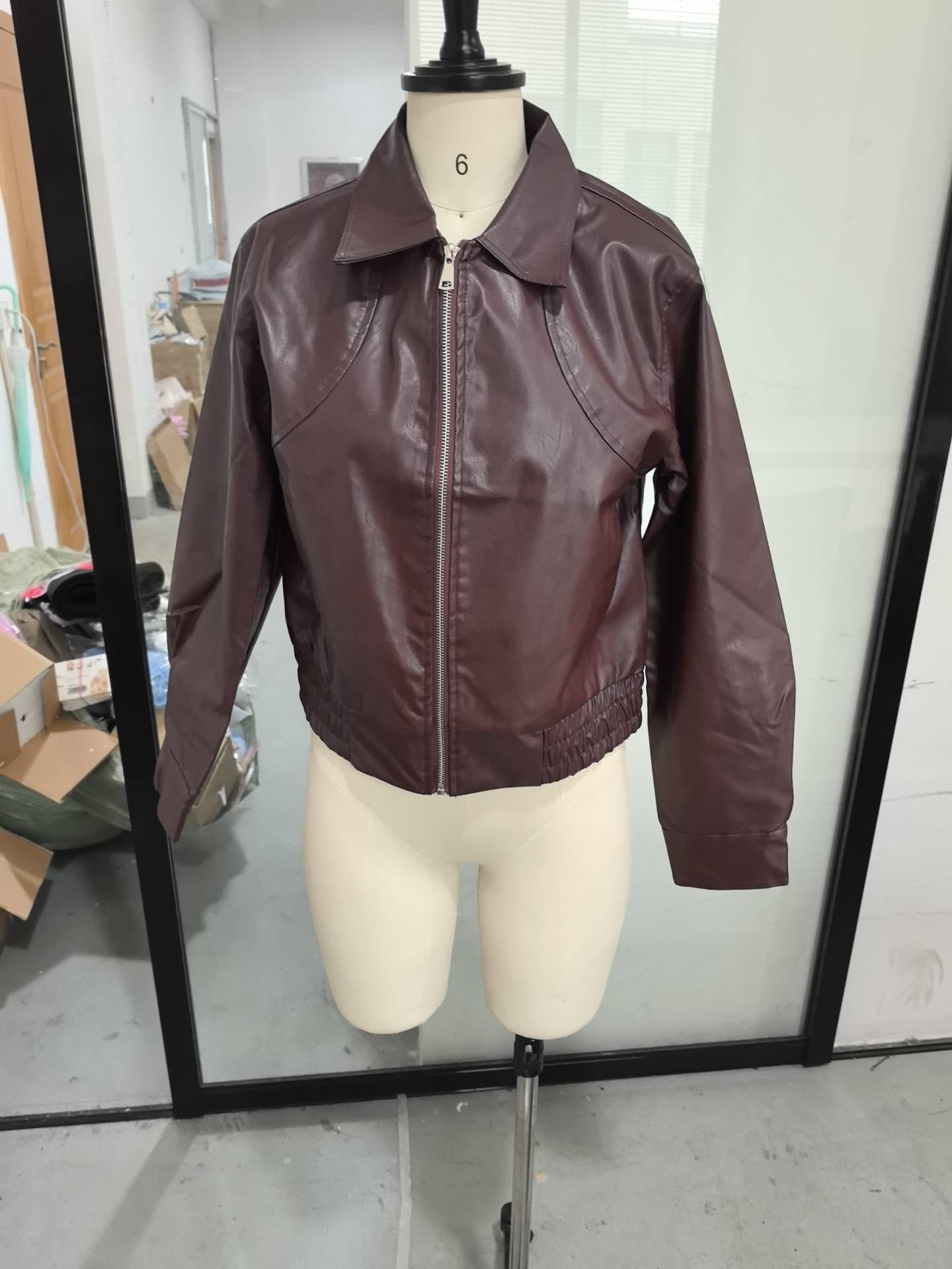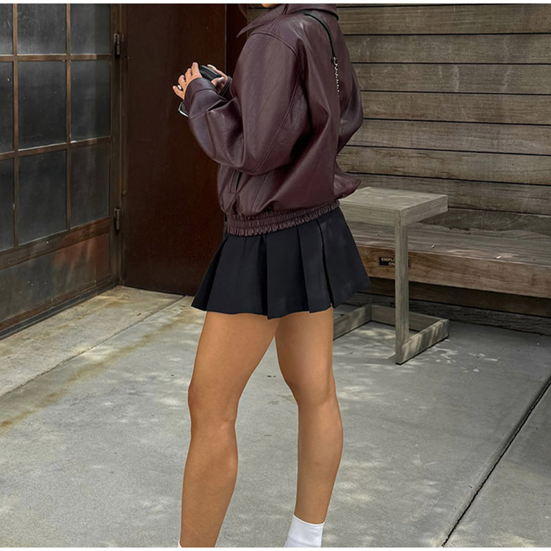 실제 사진-긴팔 지퍼 가죽 자켓 2025 유럽과 미국의 국경 간 가을 겨울 패션 여성 통근자 자켓스토어 가기