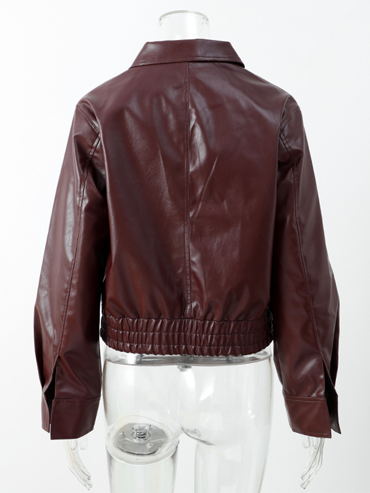 실제 사진-긴팔 지퍼 가죽 자켓 2025 유럽과 미국의 국경 간 가을 겨울 패션 여성 통근자 자켓