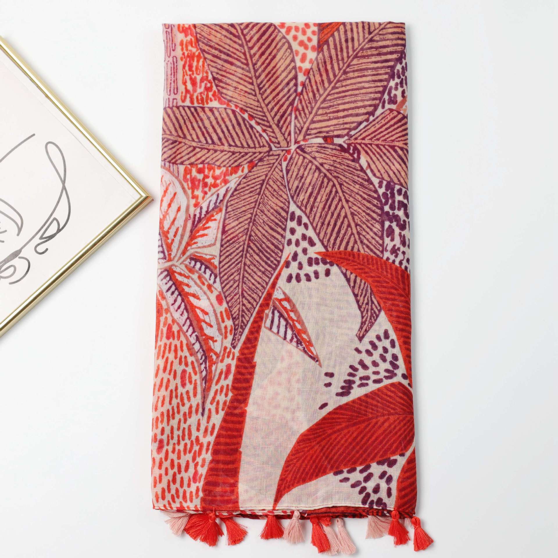 공장 판매 대외 무역 국경 붉은 종려 잎 인쇄 긴 스카프 여름 여행 휴가 선 스크린 따뜻한 목도리