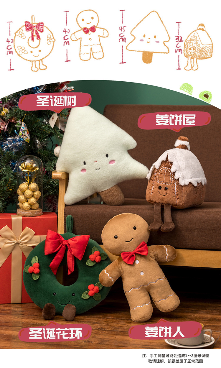 Ins 사이버 연예인 크리스마스 트리 베개 봉제 장난감 크리스마스 트리 베개 진저 브레드 맨 인형 베개 화환 인형스토어 가기