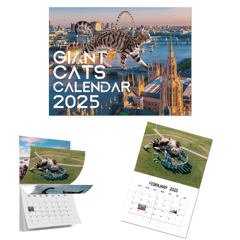 국경 간 새로운 2025 거대한 도시 고양이 달력 창조적 인 스푸핑 고양이 달력 나선형 달력 재고
