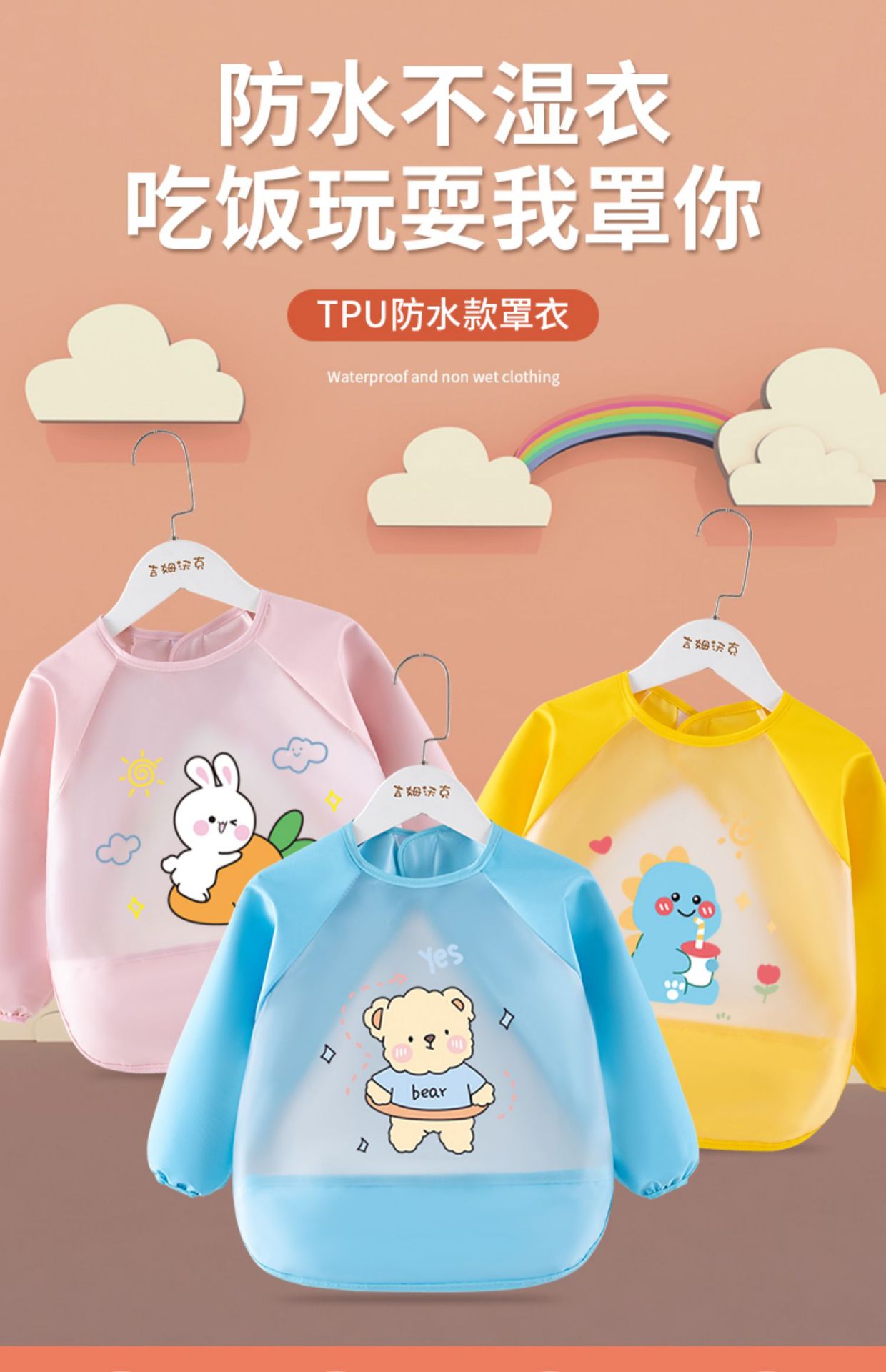 어린이 다이닝 턱받이 방수 여름 아기 바지 더러운 방증 어린이 긴팔 쌀 공 아기의 안티웨어 앞치마