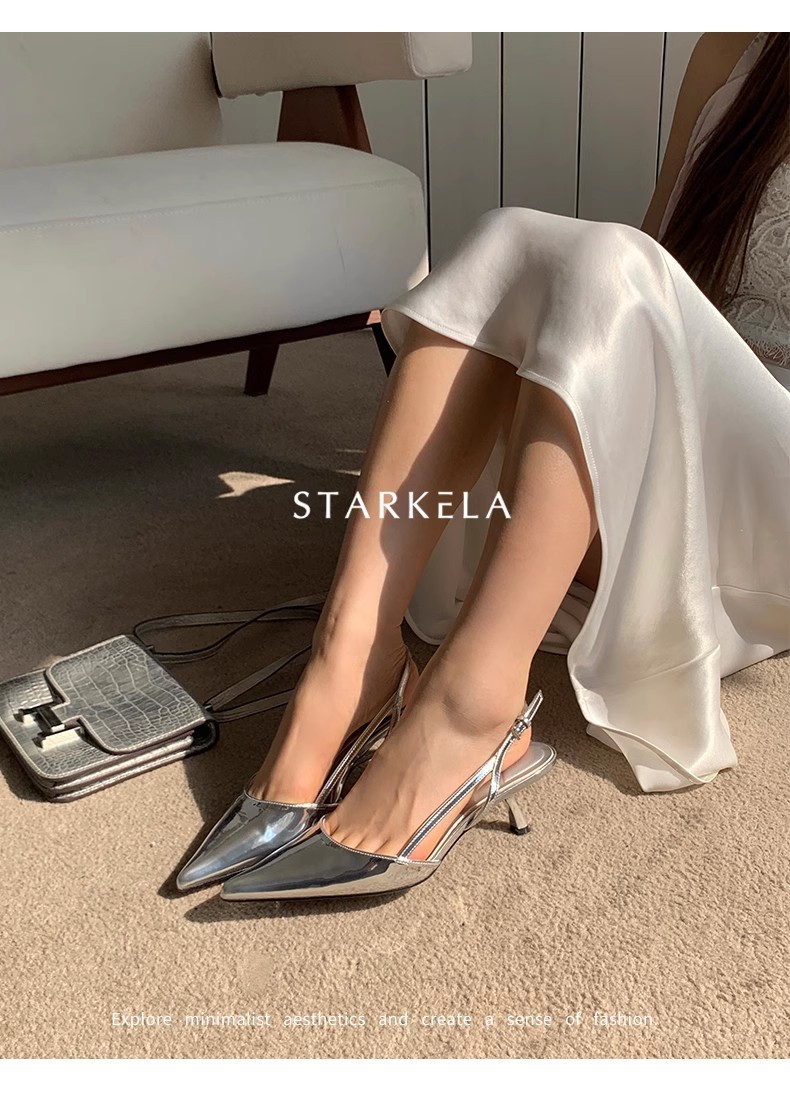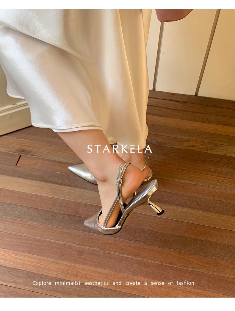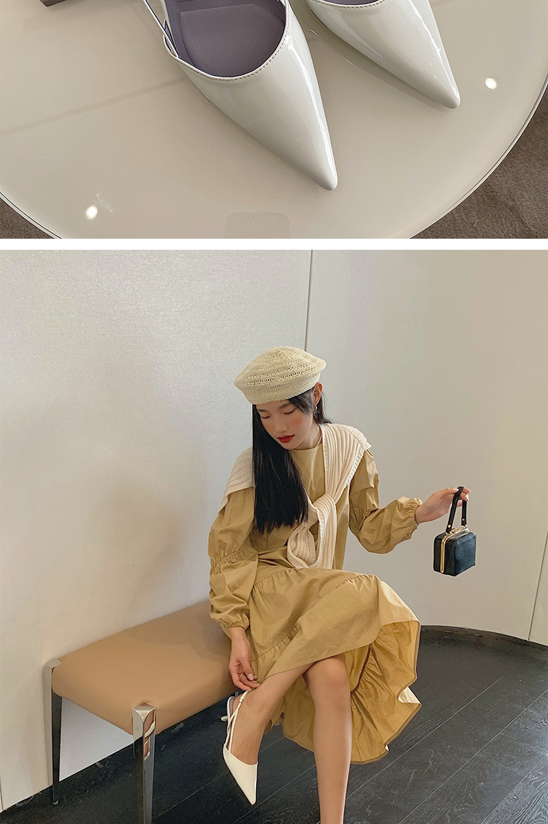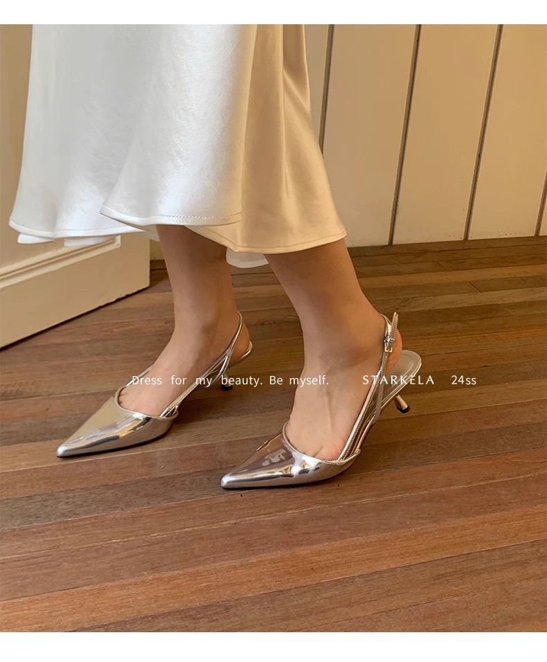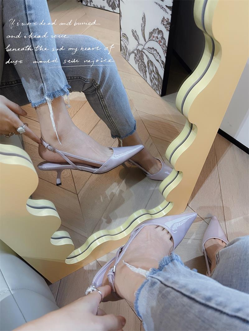 2024 년 봄과 가을 새로운 패션 올매치 포인팅 토 버클 샌들 우아한 얇은 발 바오터우 여성용 싱글 레이어 신발스토어 가기
