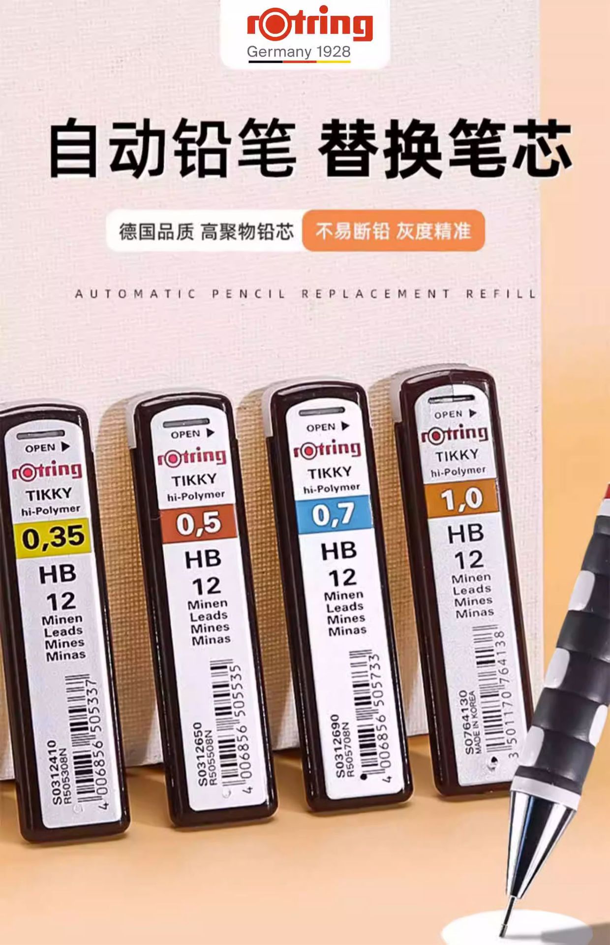 독일 로트링 레드 링 리드 0.3/0.5/0.7mm 자동 연필 특수 액티브 교체 코어 2B 리필스토어 가기