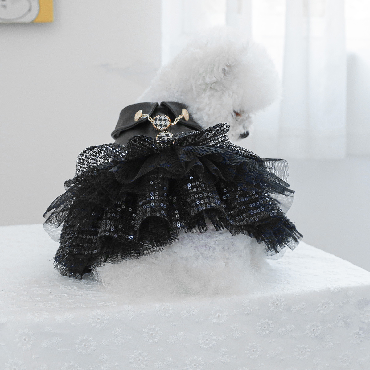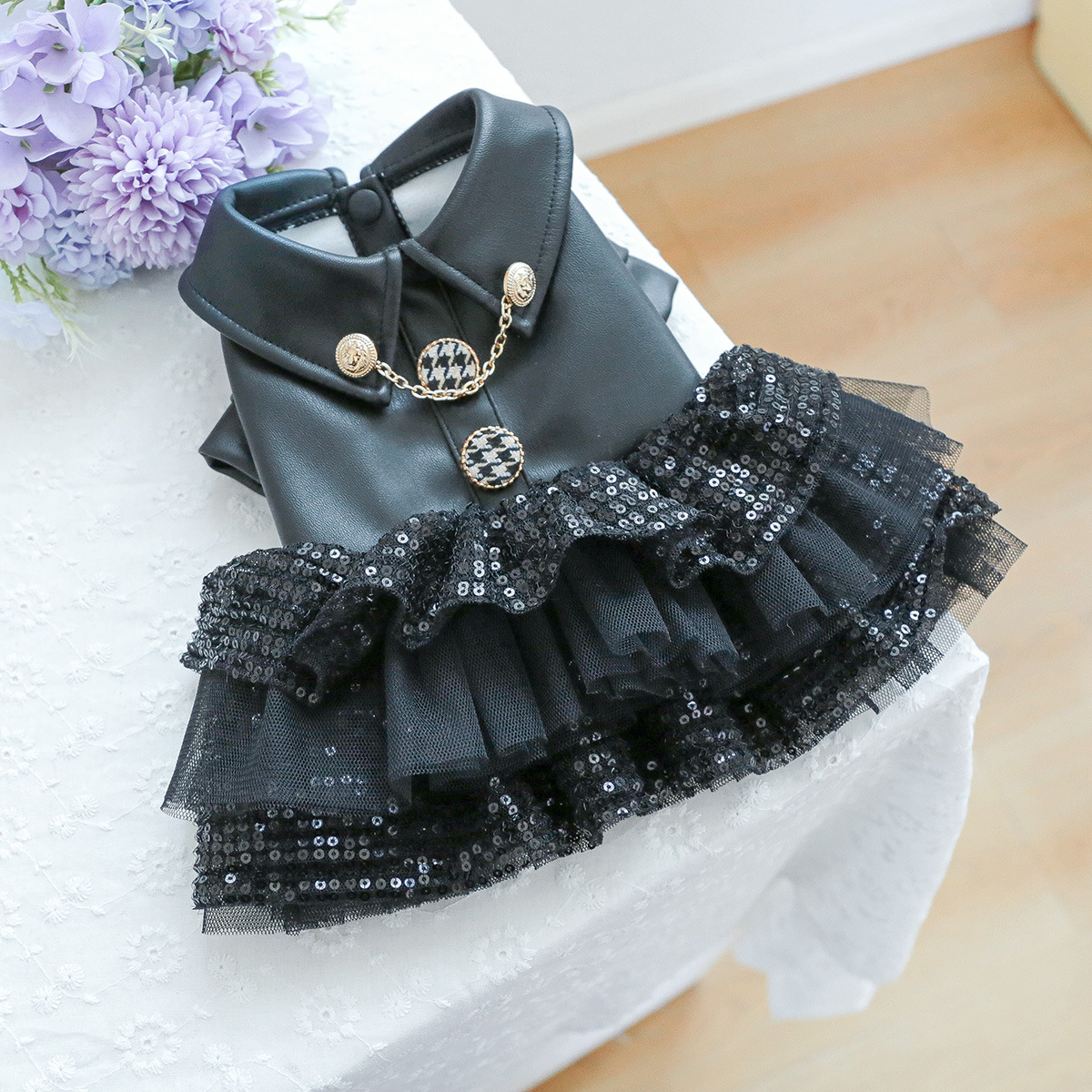 공장 직접 공급/재고 새 애완 동물 의류 개 고양이 의류 의류 잘 생긴 가죽 의류 스팽글 작은 가죽 스커트스토어 가기