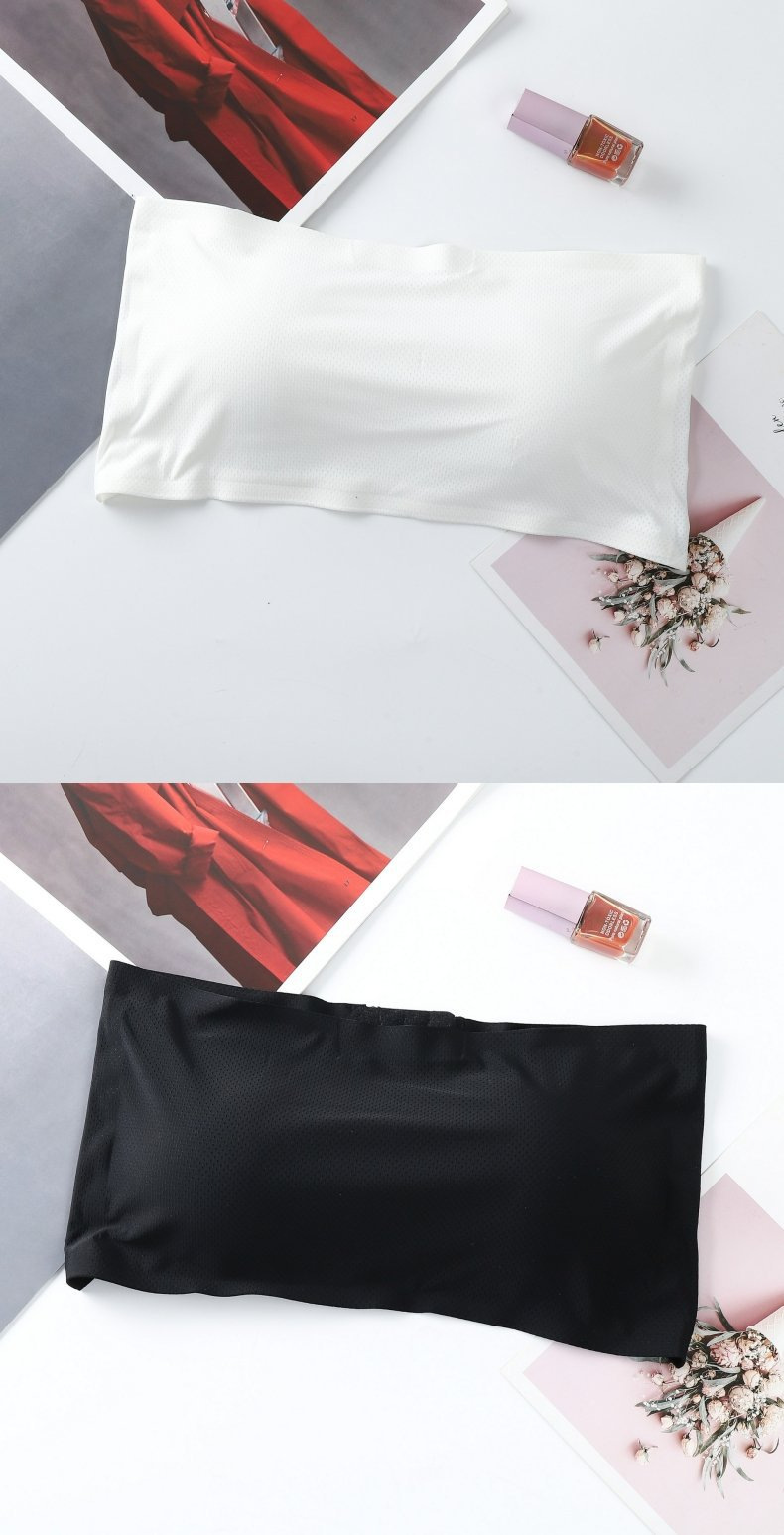 추적없는 원피스 아이스 실크 통기성 메쉬 랩 가슴 스트랩리스 원피스 랩 아이스 실크 안티 슬립 아름다운 백 튜브 모양의 속옷