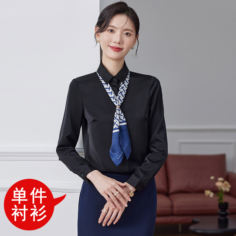 검은 셔츠 여성용 긴팔 보텀 패션 서양식 전문 인테리어 우아한 봄과 가을 2024 새로운 쉬폰 셔츠스토어 가기