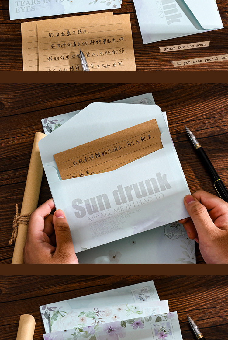 빈티지 간단한 고가의 편지 종이 봉투 세트 틈새 스타일 생일 사랑 편지 손으로 쓴 커플 고백 편지 뗏목
