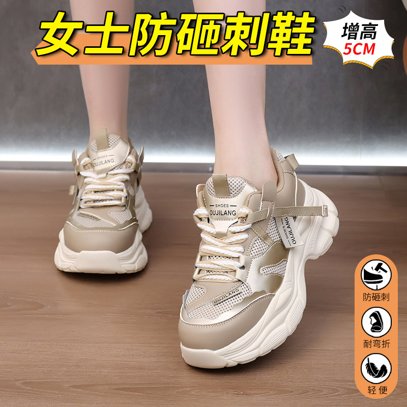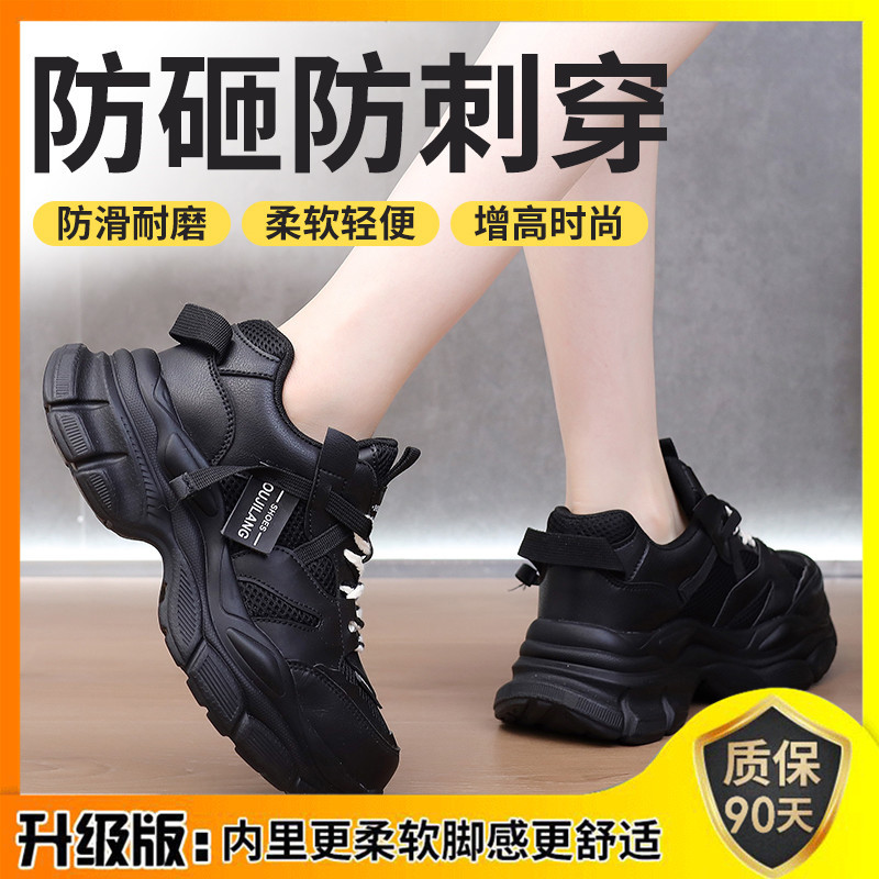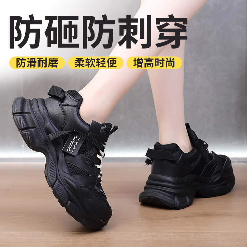 사계절 여성용 노동 보호 신발, 새로운 스타일, 충격 방지, 펑크 방지, 절연, 장시간 서 있어도 발이 피곤하지 않음, 키가 커짐, 초경량 보호 및 내마모성 신발스토어 가기