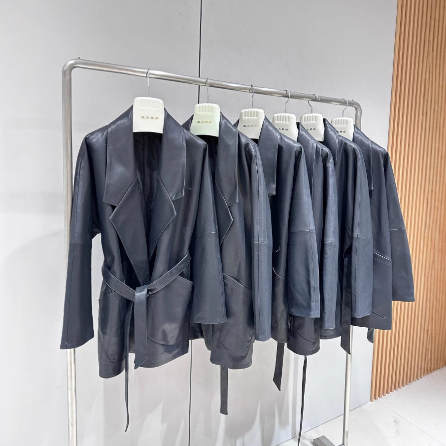 세트 칼라 벨트 느슨한 양가죽 코트 봄과 가을 정품 가죽 코트 여성 와이드 에디션 중간 길이 코트 특별 혜택스토어 가기
