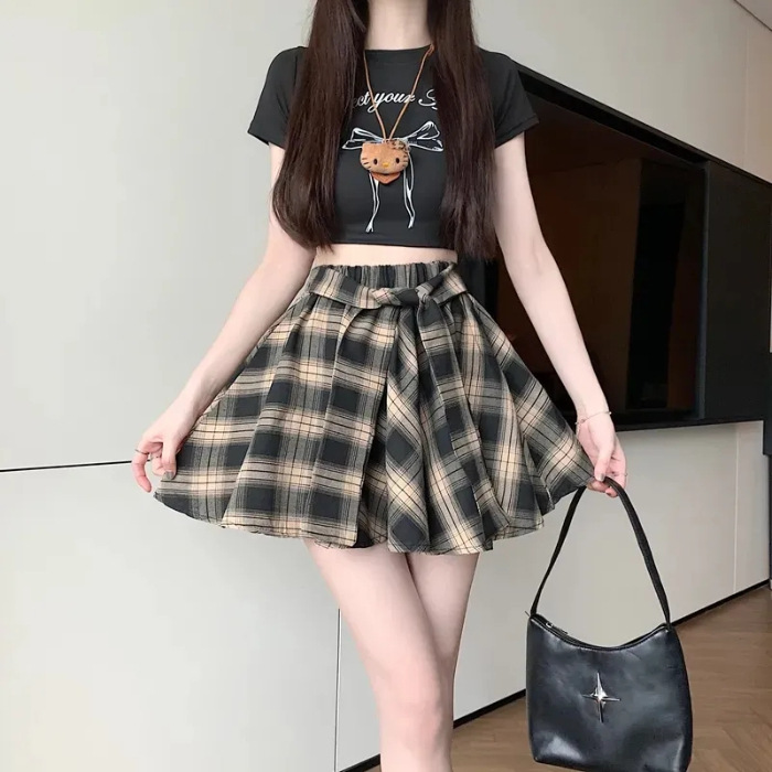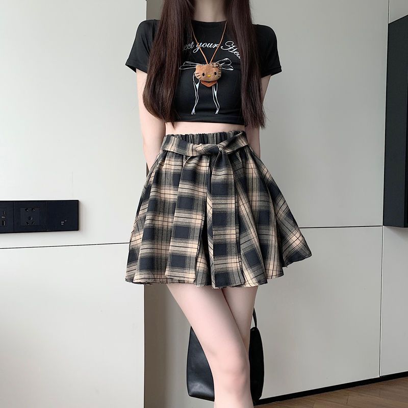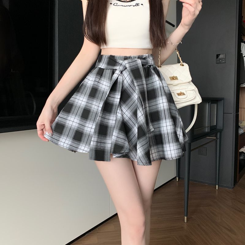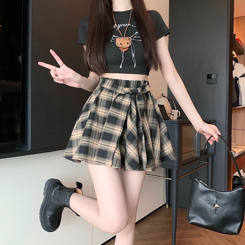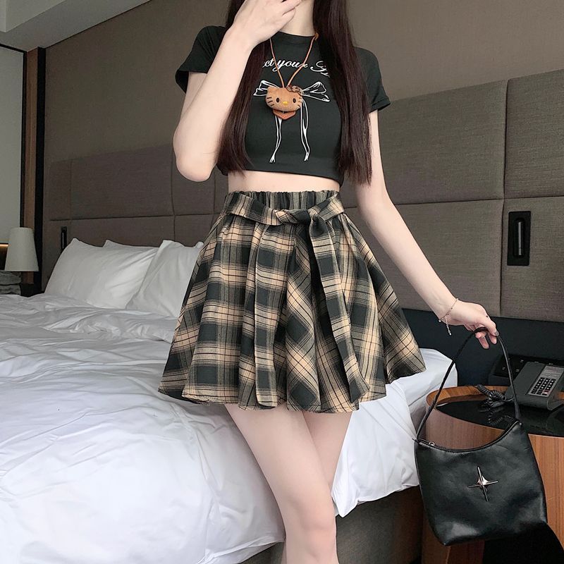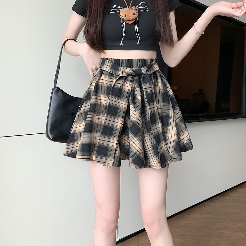 [오리지널 패브릭 오리지널 연습] 레트로 플레이드 스커트 여성 하이 웨이스트 스커트 올매치 슬리밍 스커트스토어 가기
