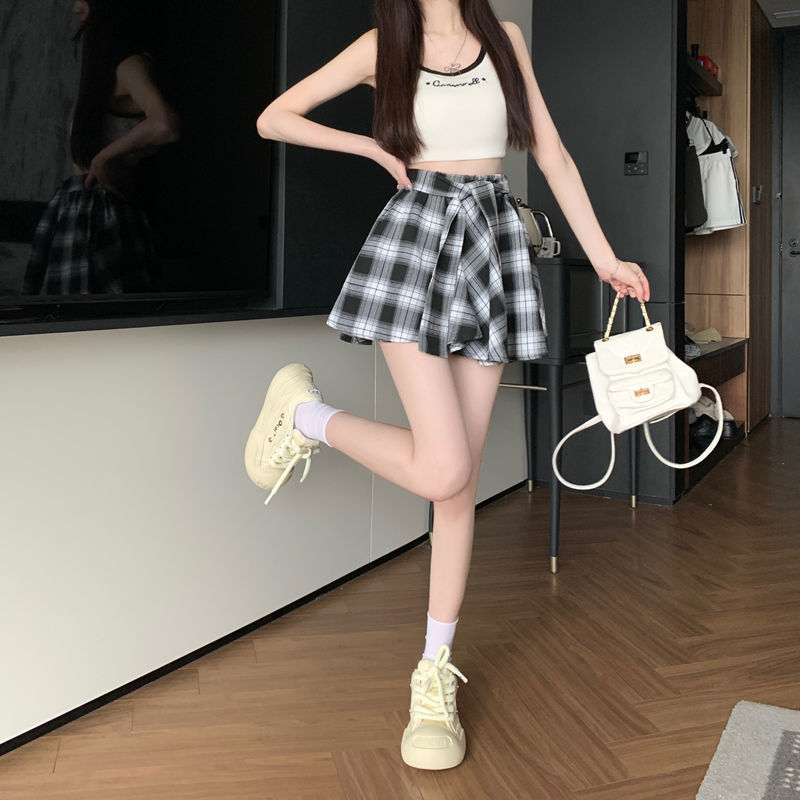 [오리지널 패브릭 오리지널 연습] 레트로 플레이드 스커트 여성 하이 웨이스트 스커트 올매치 슬리밍 스커트