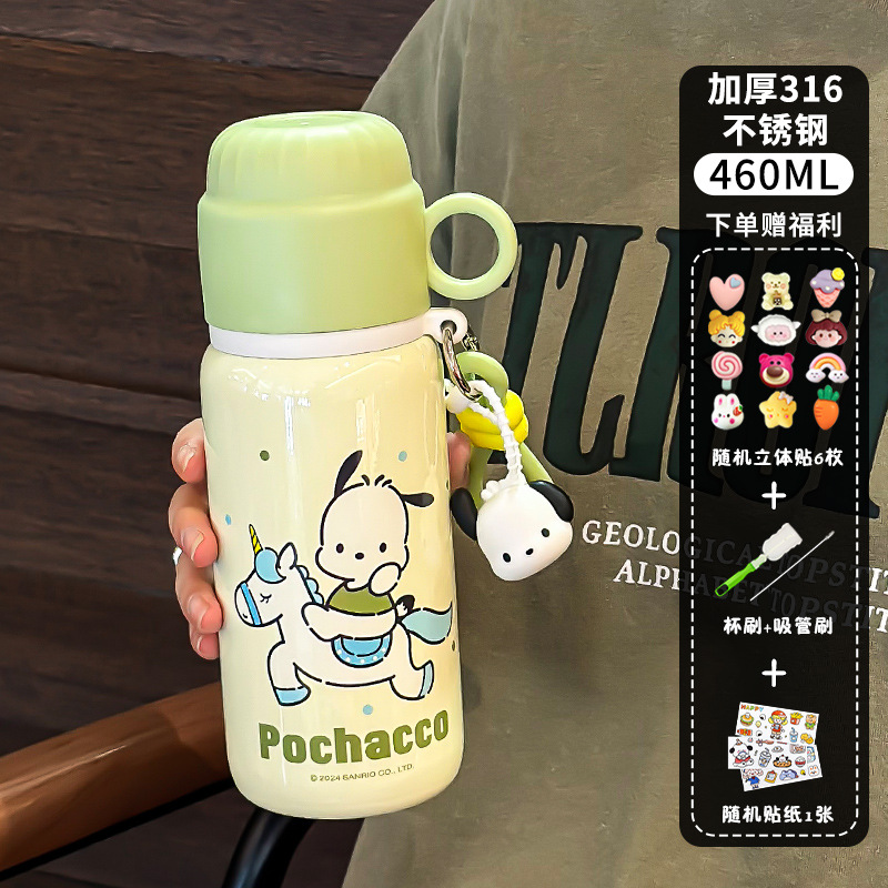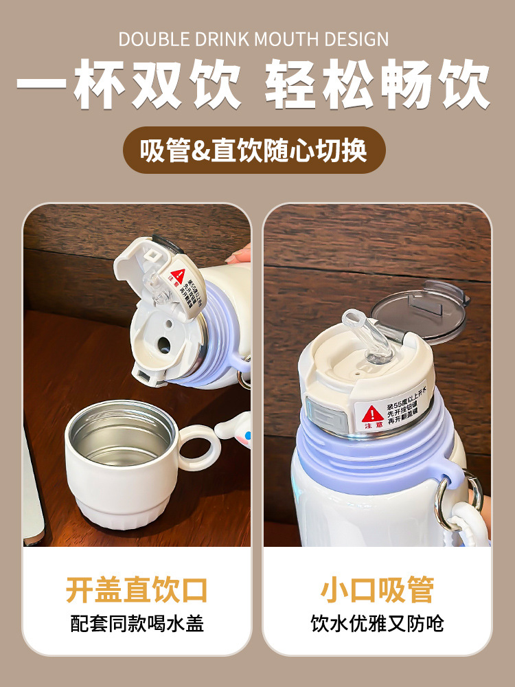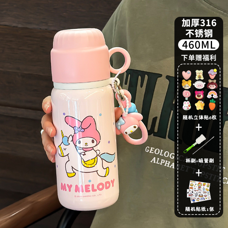 Kulomi 머그 어린이 316 스테인레스 스틸 여자 학교 특별 마시는 컵 뚜껑 귀여운 더블 마시는 컵스토어 가기