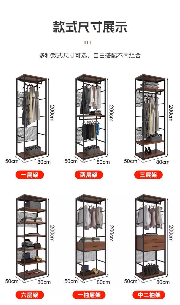 워크 인 코트 랙 가정용 침실 바닥 걸이 서랍 의류 매장 디스플레이 랙 더블 레이어 오픈 옷장