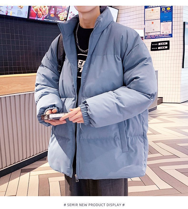 코튼 패딩 재킷 남성용 겨울 패딩면 패딩 재킷 코트 트렌디 한 느슨한 스탠드 칼라 패딩 따뜻한 빵 재킷 남성용 코튼 패딩 재킷