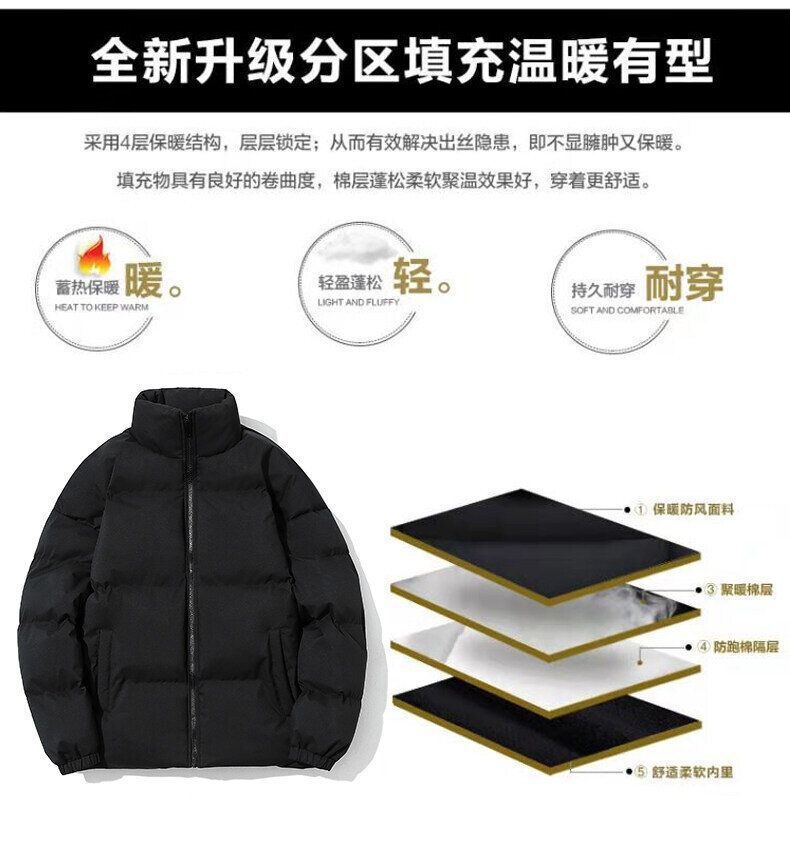 코튼 패딩 재킷 남성용 겨울 패딩면 패딩 재킷 코트 트렌디 한 느슨한 스탠드 칼라 패딩 따뜻한 빵 재킷 남성용 코튼 패딩 재킷스토어 가기