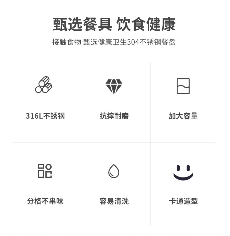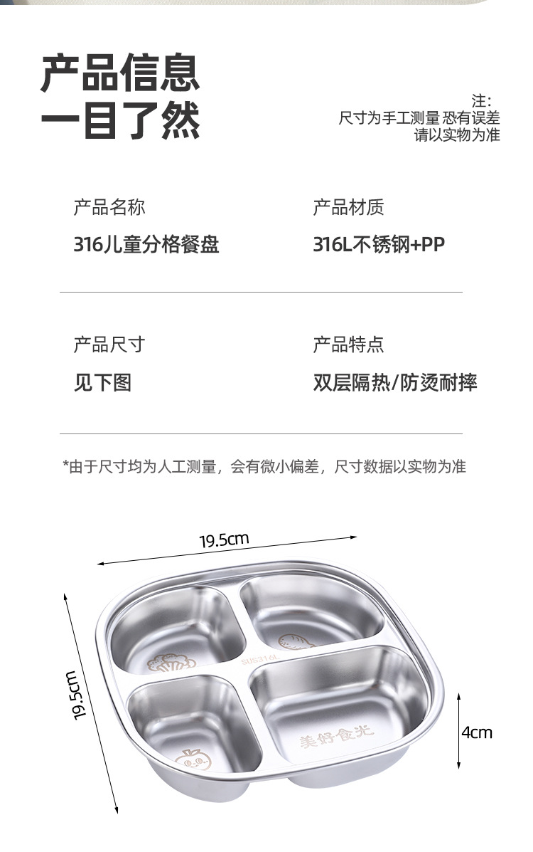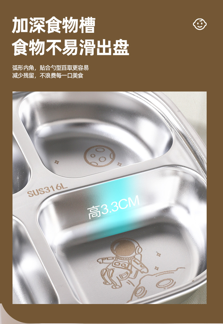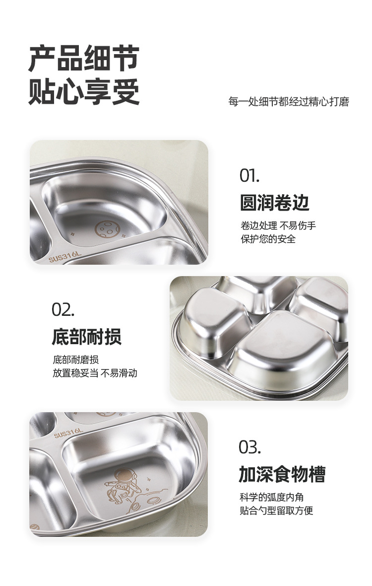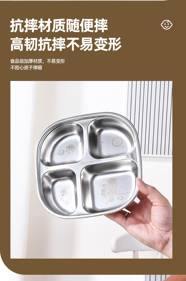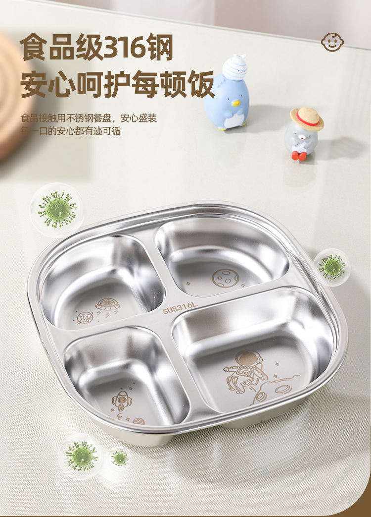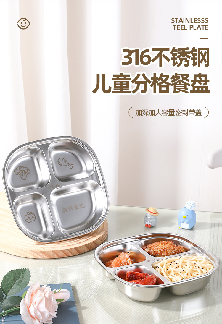 316 스테인레스 스틸 디너 플레이트 식품 학년 어린이 디너 플레이트 학교 유치원 가정용 낙하 방지 매점 분할판스토어 가기