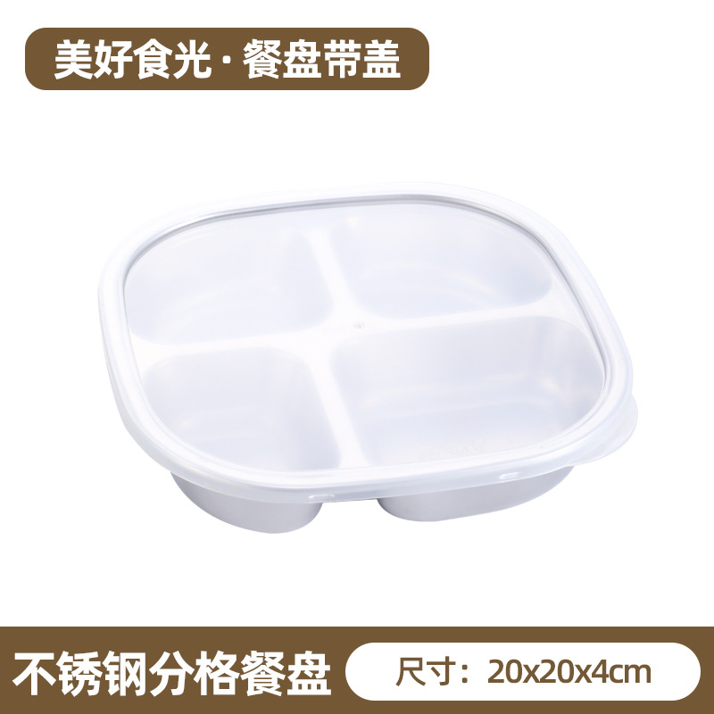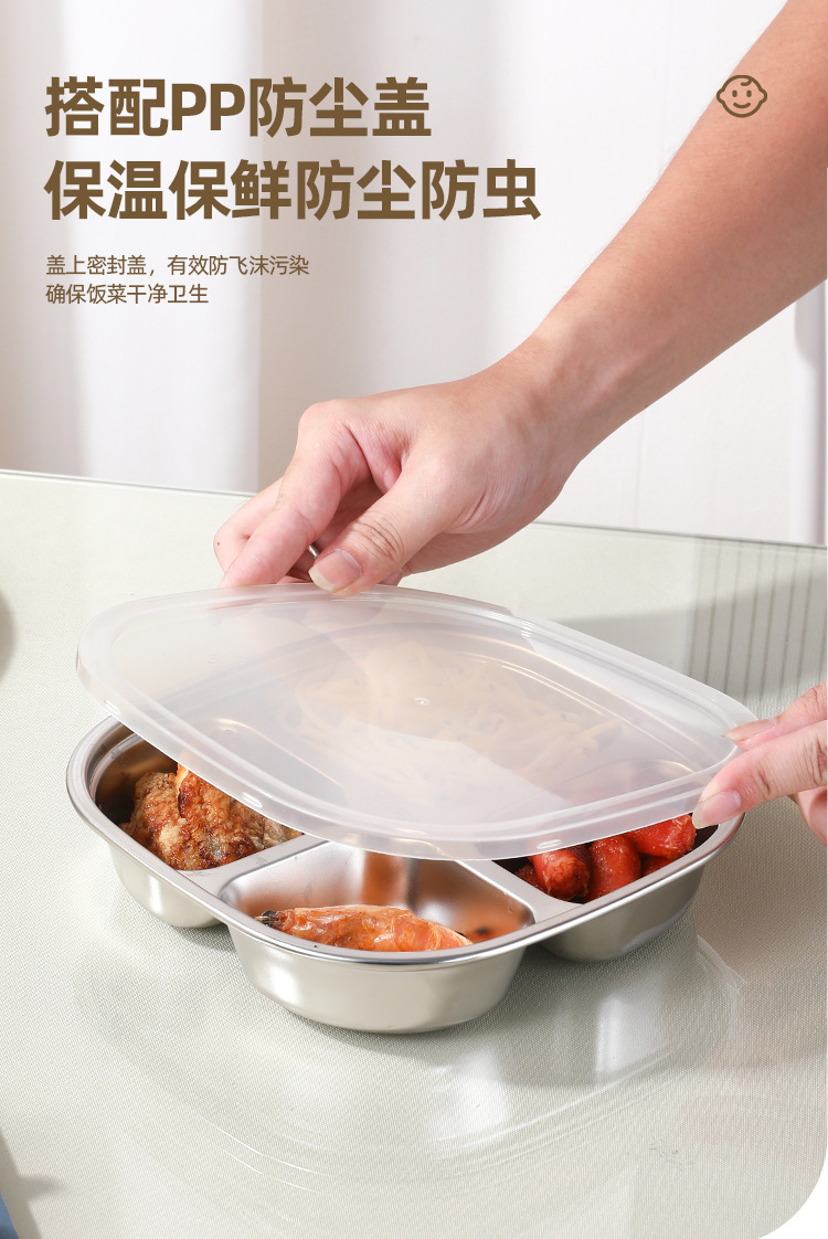• 뚜껑이 있는 스테인리스 칸막이 디너 접시 [멋진 음식 빛]