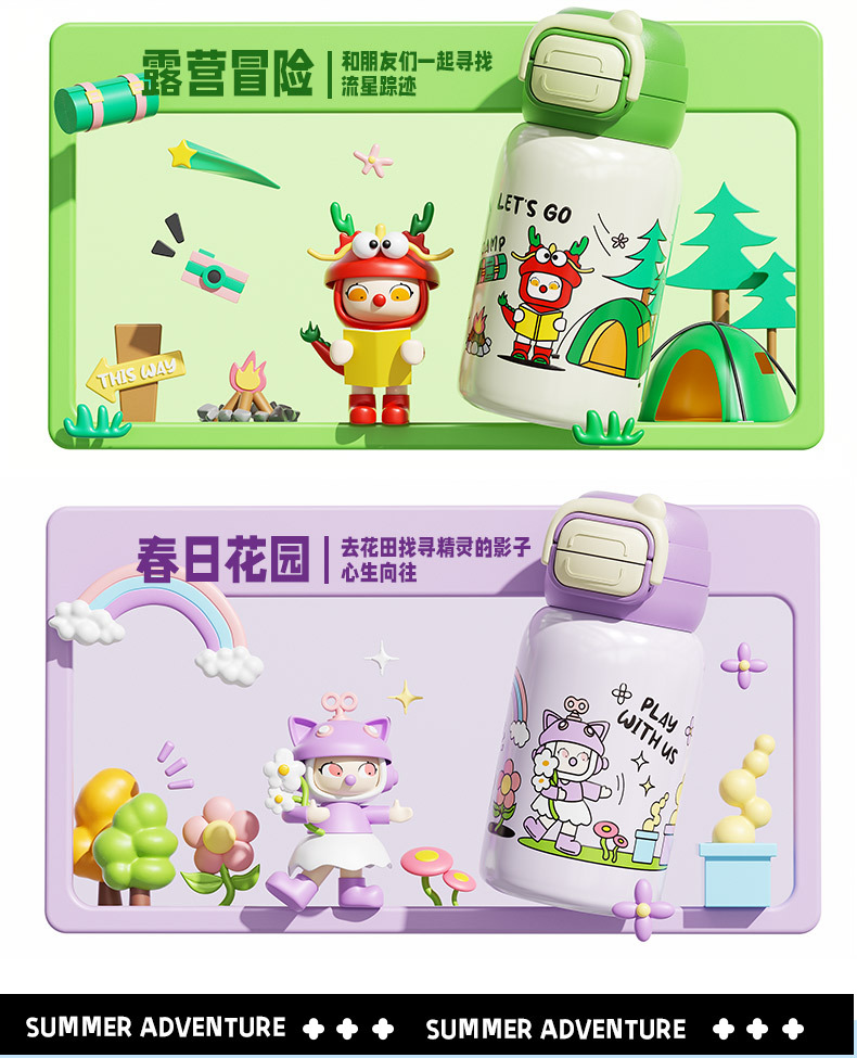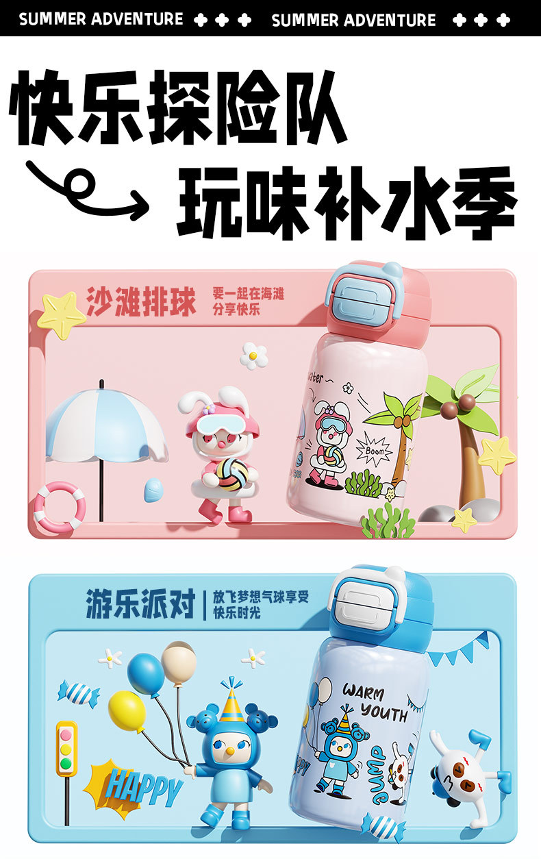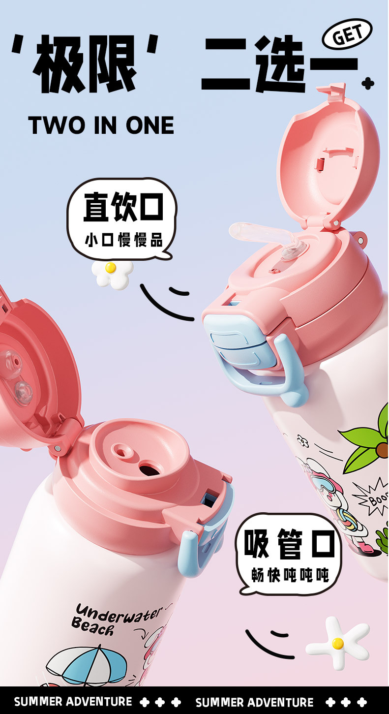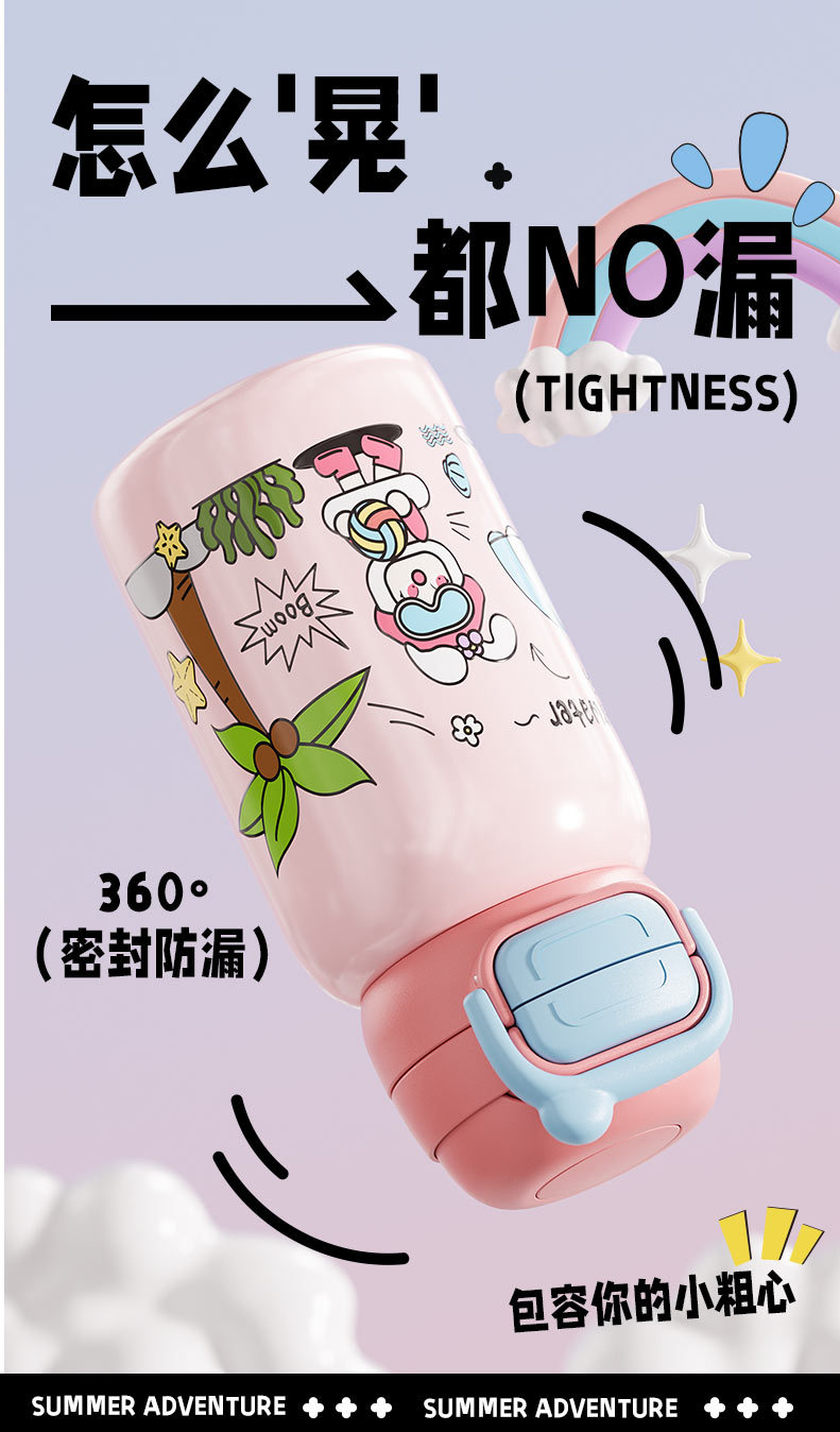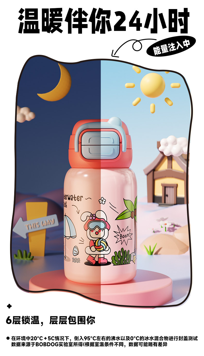 지능형 온도 측정 316 스테인레스 스틸 더블 음료 어린이 보온병 만화 높은 색상 가치 보온병 학생 밀짚 컵스토어 가기