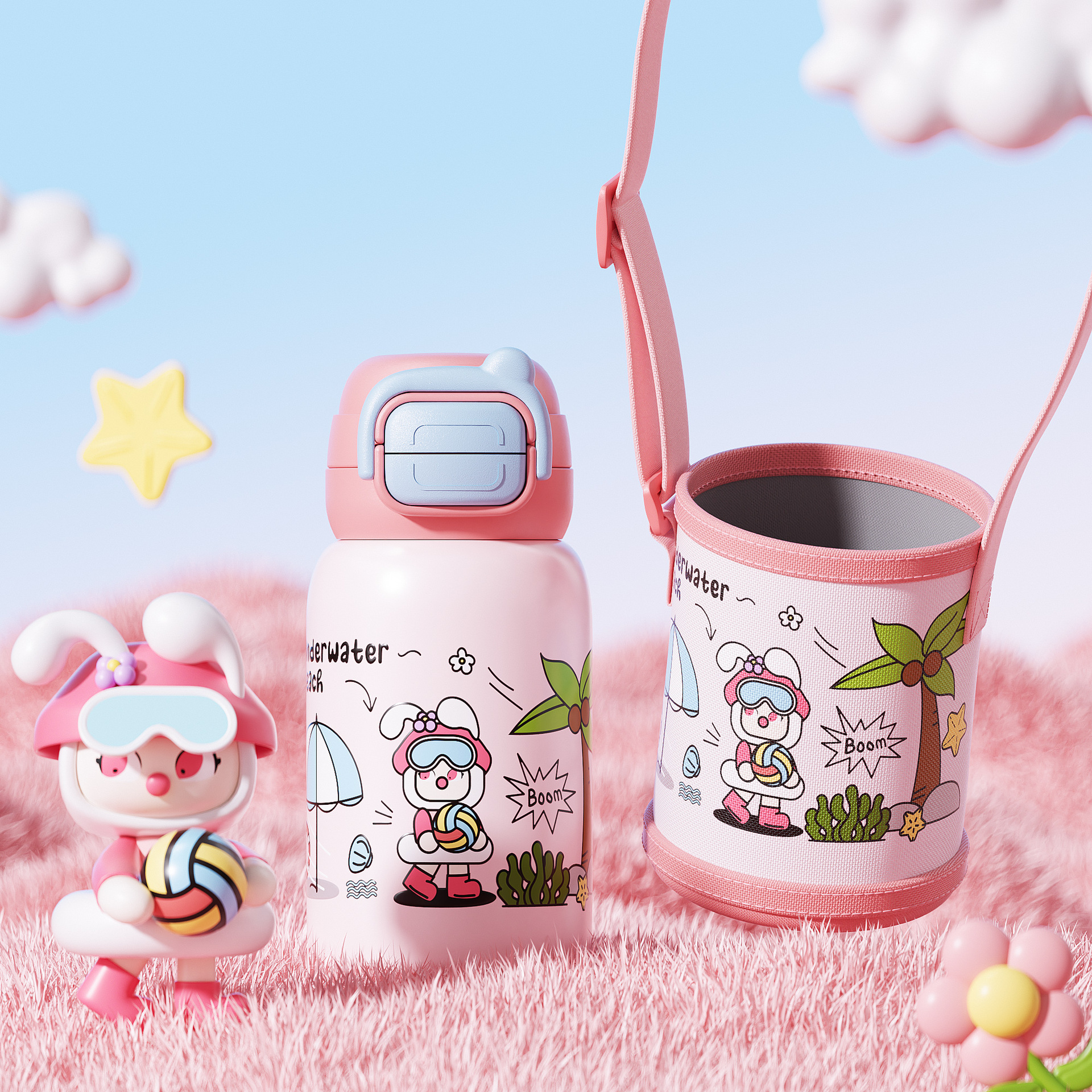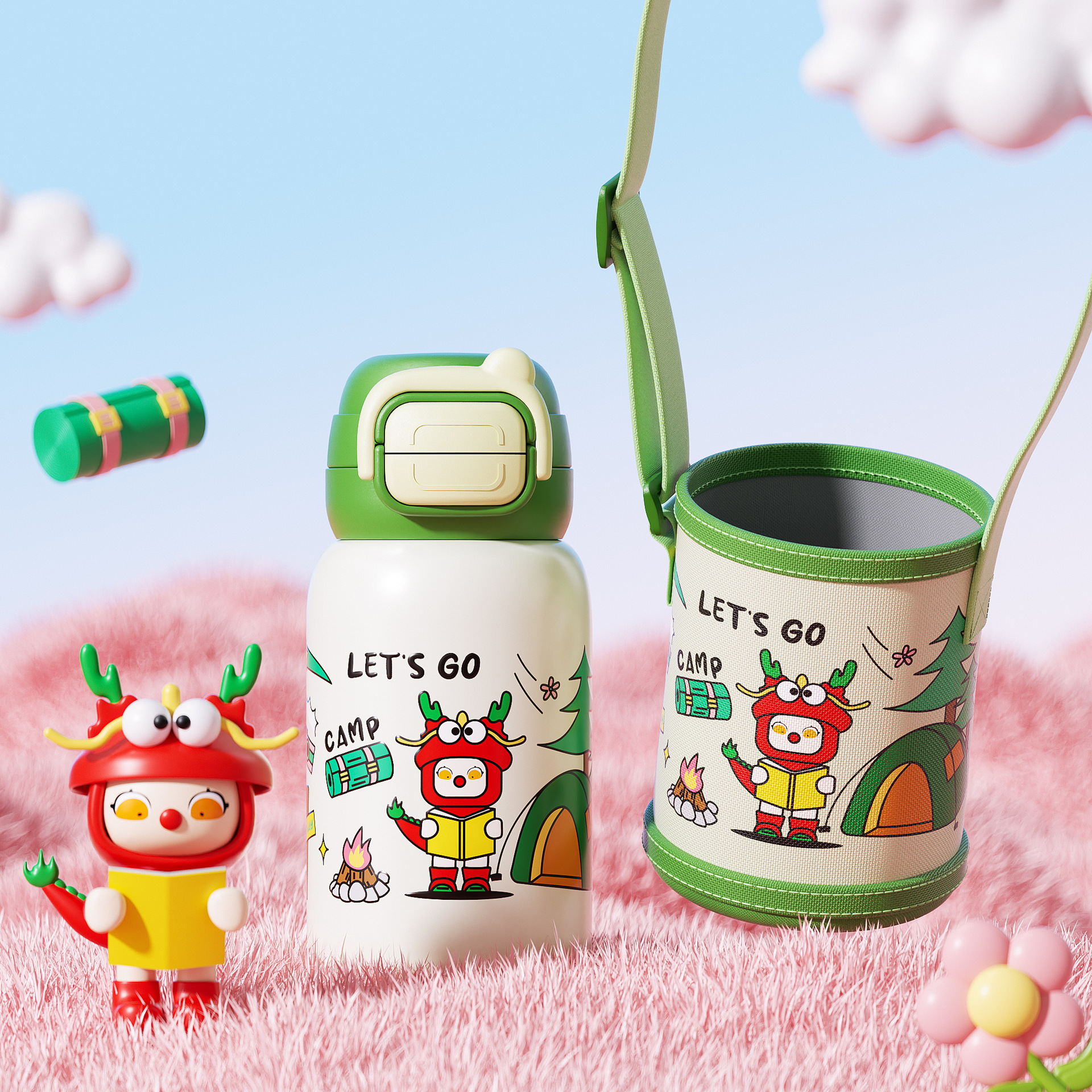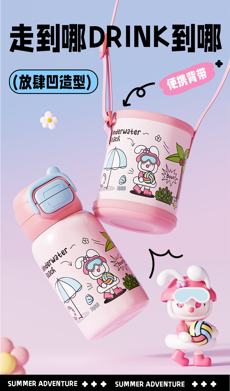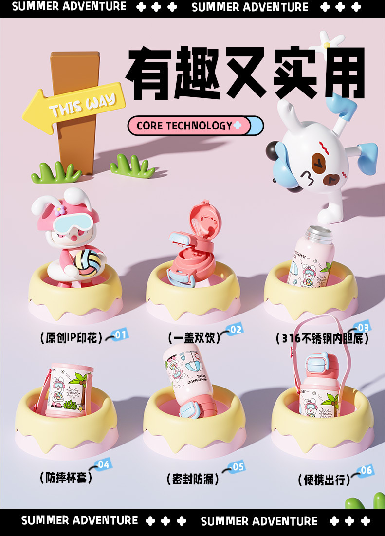 지능형 온도 측정 316 스테인레스 스틸 더블 음료 어린이 보온병 만화 높은 색상 가치 보온병 학생 밀짚 컵스토어 가기