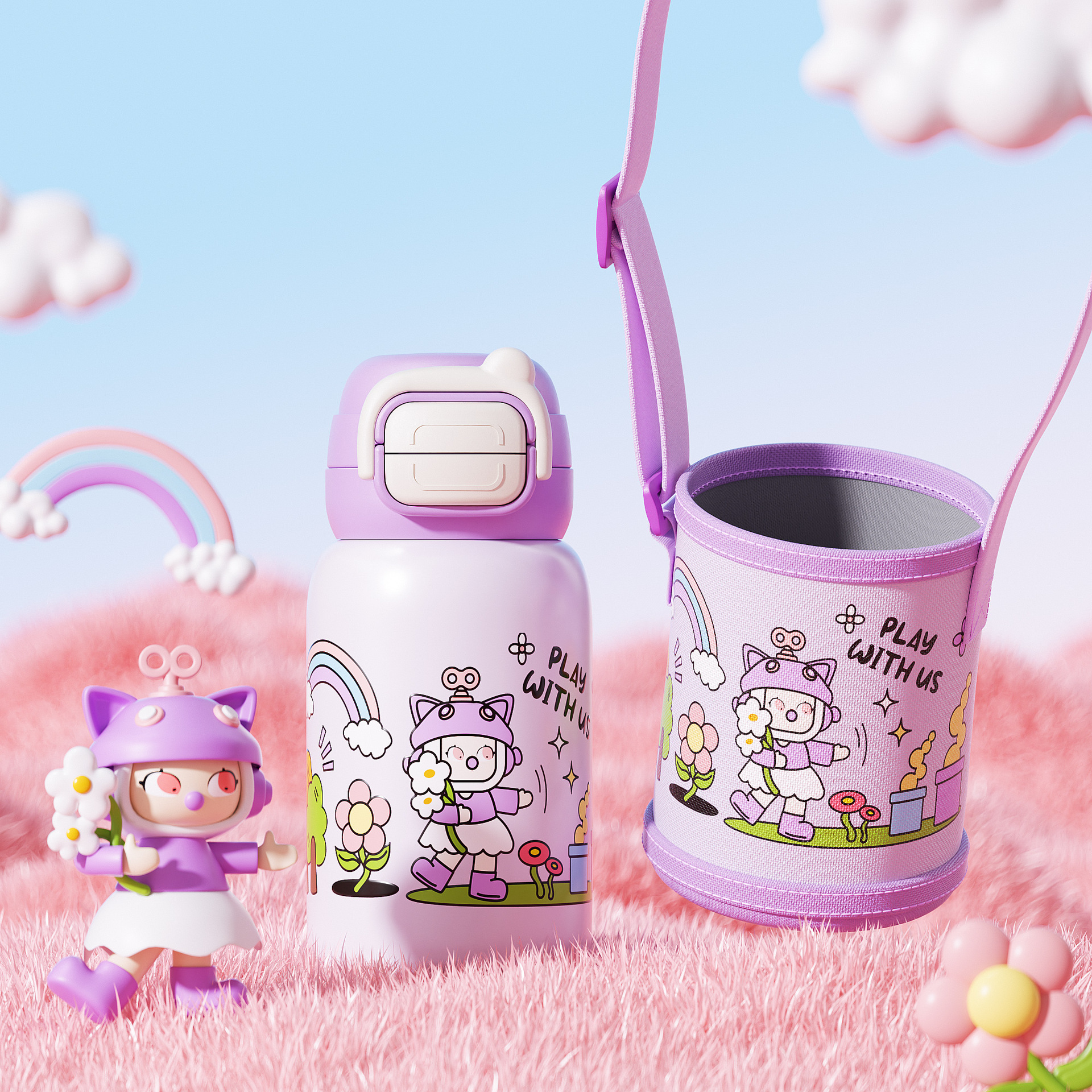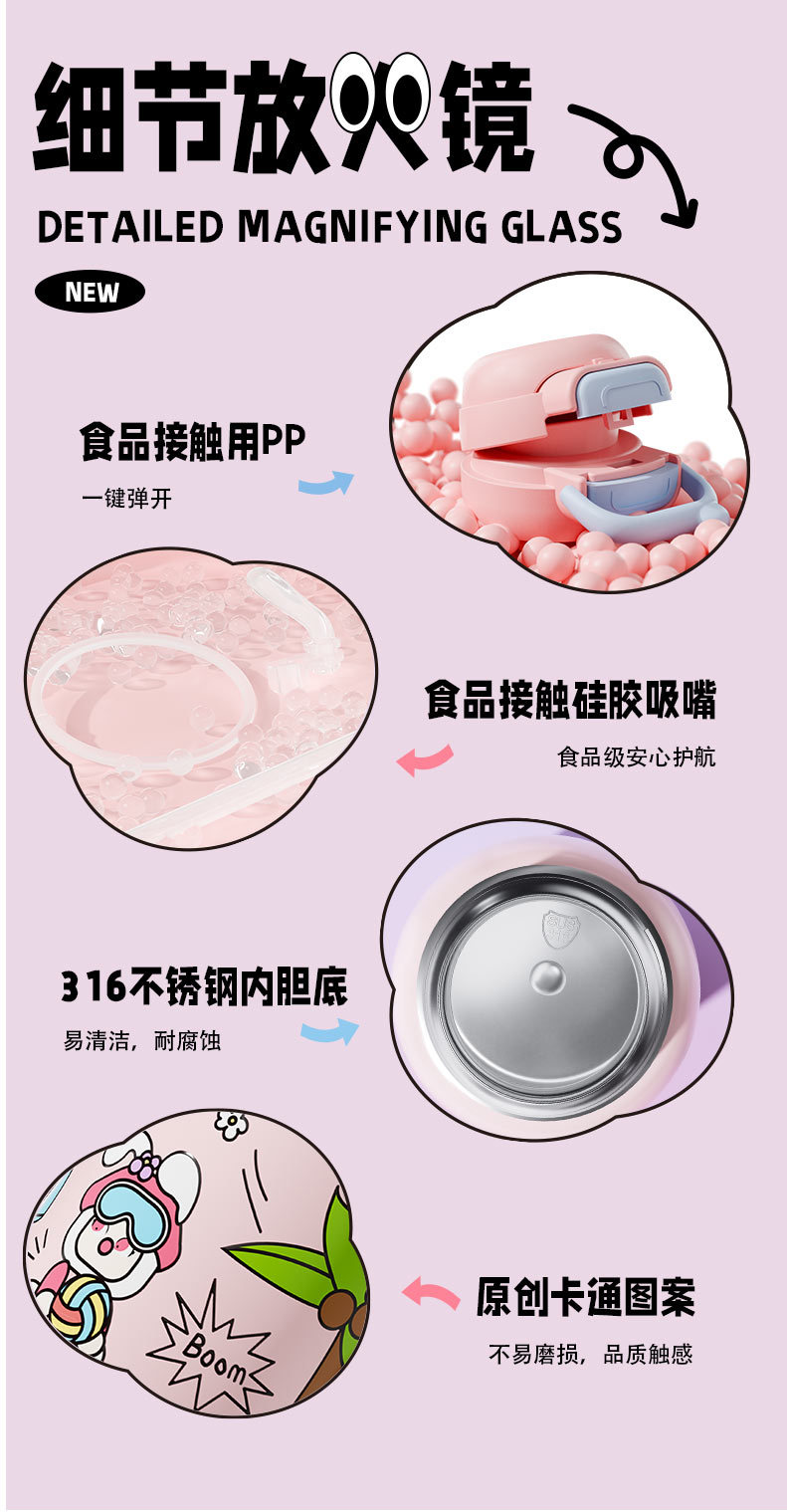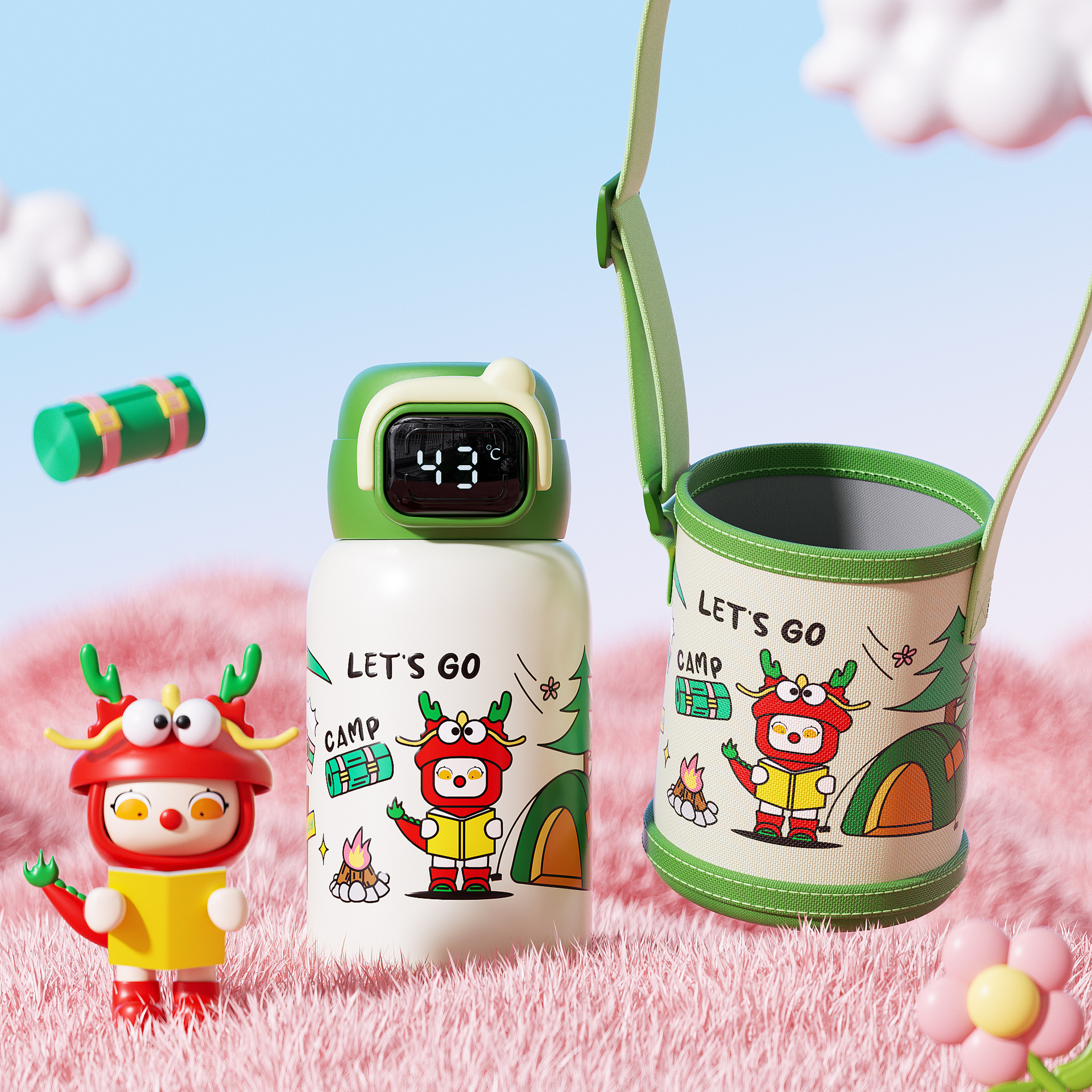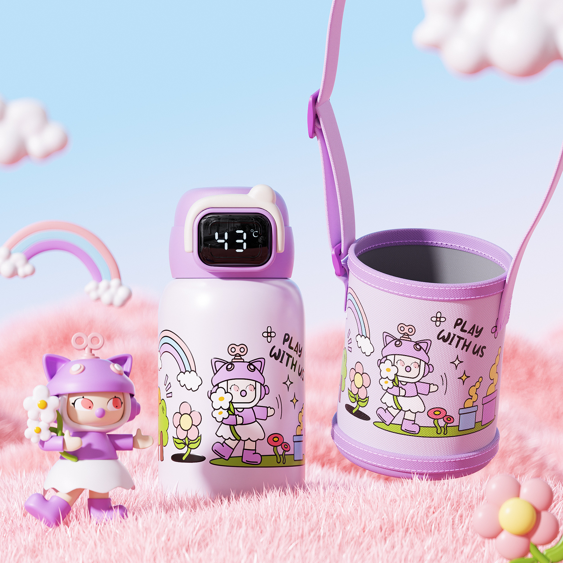 지능형 온도 측정 316 스테인레스 스틸 더블 음료 어린이 보온병 만화 높은 색상 가치 보온병 학생 밀짚 컵