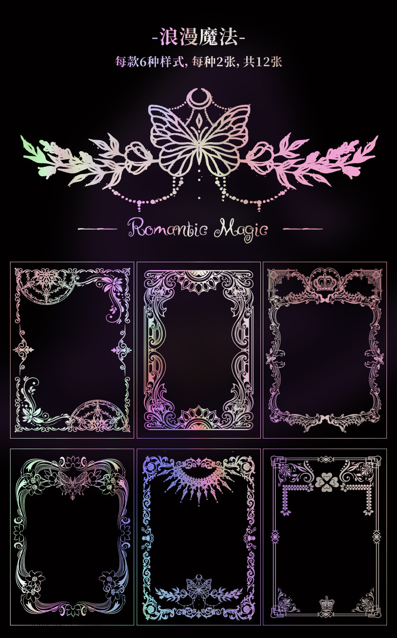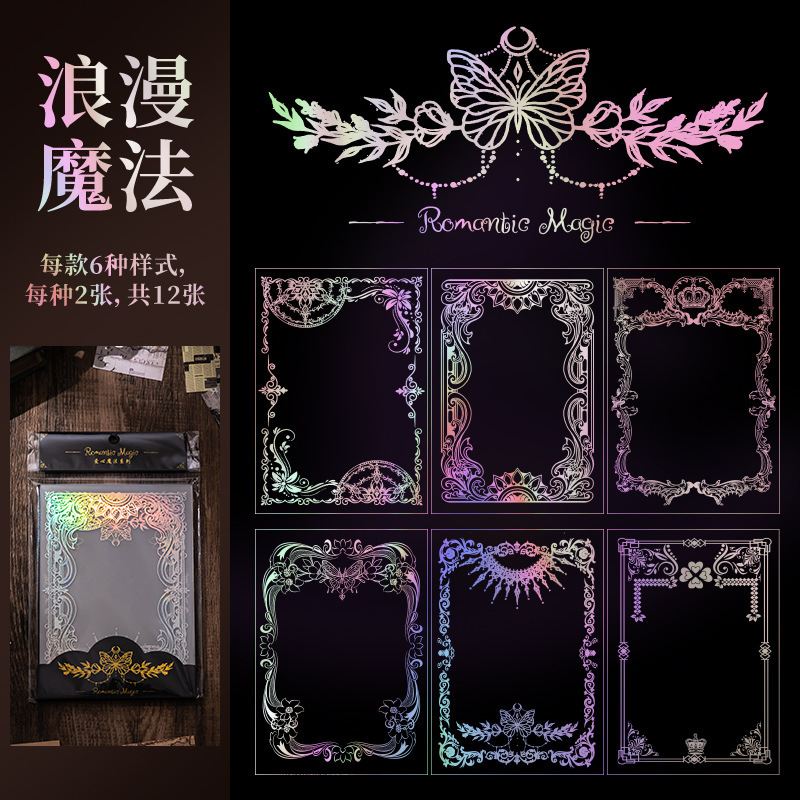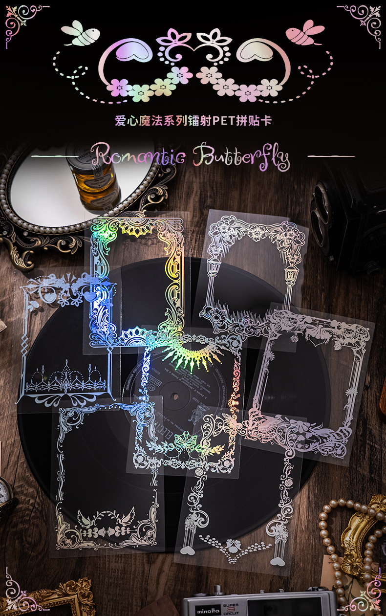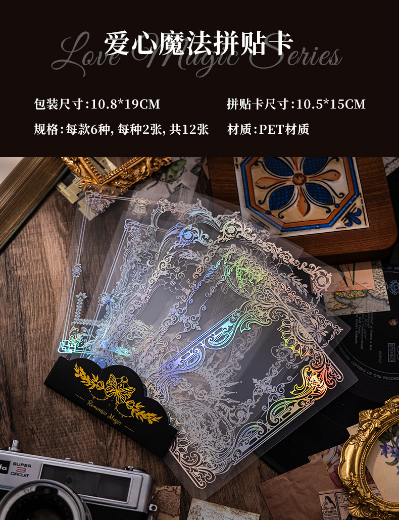 사랑 마술 시리즈 스티커 PET 3 차원 레이저 diy goo 카드 손 계정 기본 카드 장식 재료 콜라주