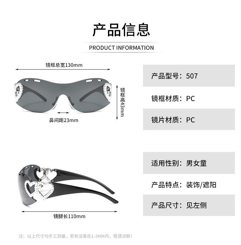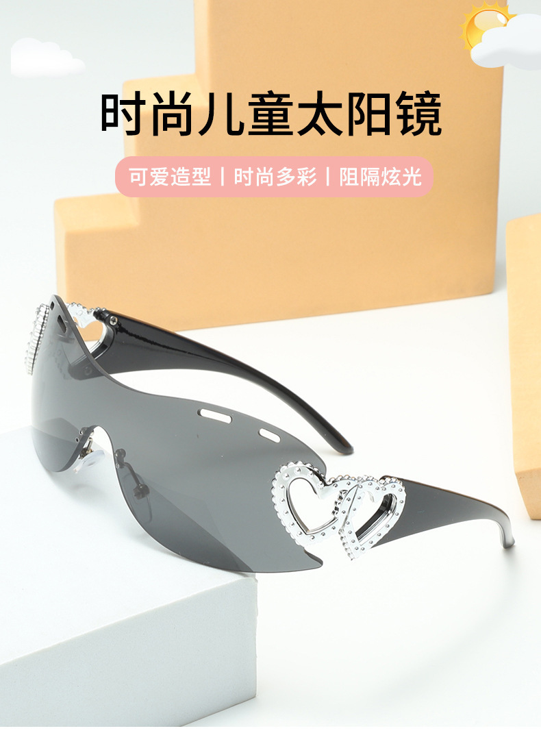 새로운 슬라이스 프레임리스 러브 Y2K 어린이 선글라스 유럽과 미국 가벼운 고급 고급 고급 센스 안경 재고 트렌디 선글라스