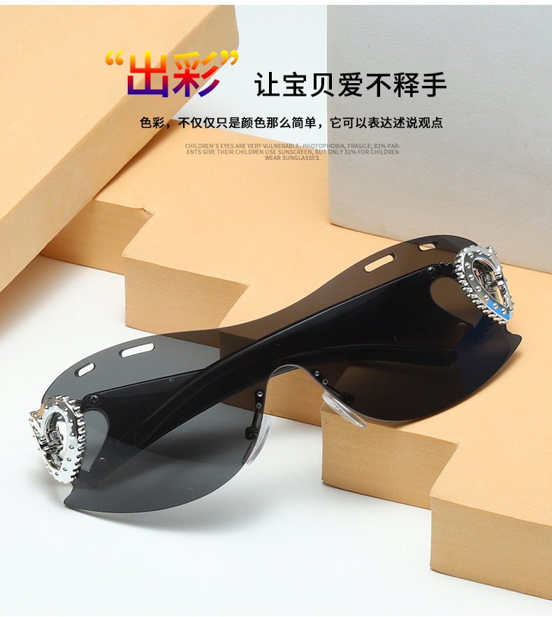 새로운 슬라이스 프레임리스 러브 Y2K 어린이 선글라스 유럽과 미국 가벼운 고급 고급 고급 센스 안경 재고 트렌디 선글라스스토어 가기