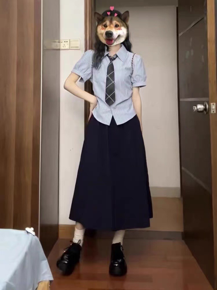 세트 여성 2024 년 여름 새로운 한국 스타일 나이를 줄이는 부드러운 스타일 반팔 줄무늬 셔츠 탑 하이 허리 트렌디 스커트