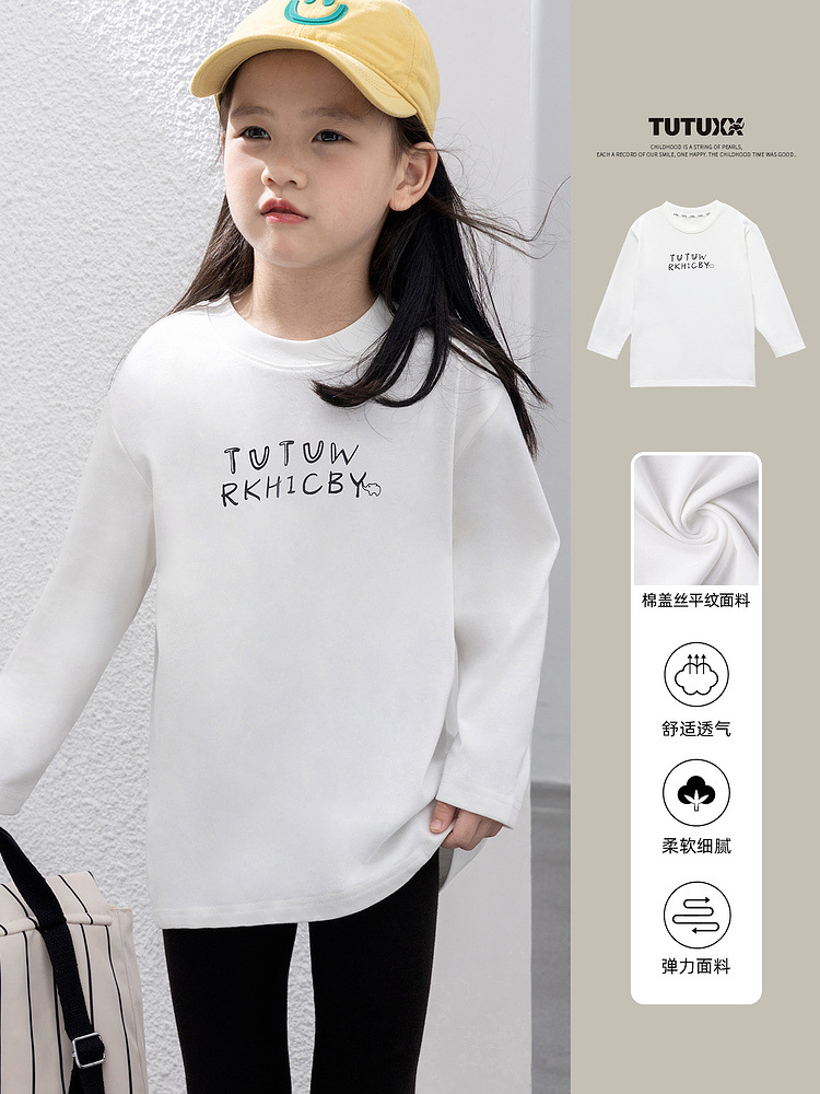 동상 아동복 여아 티셔츠 2025 봄새 아동복 캐주얼 편지베이스 셔츠 어린이 올매치 탑